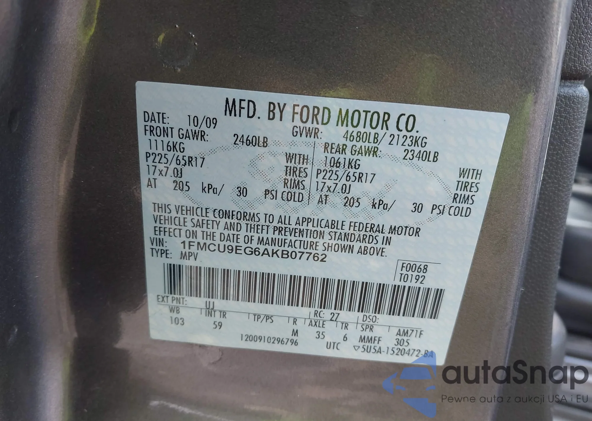 VIN: 1FMCU9EG6AKB07762