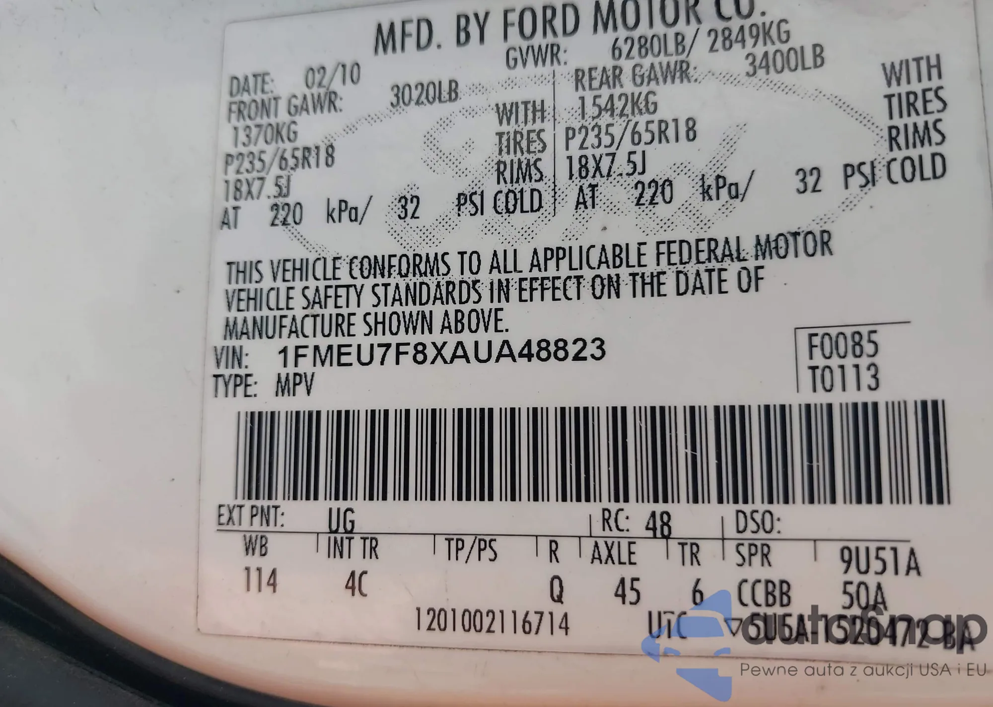 • VIN: 1FMEU7F8XAUA48823