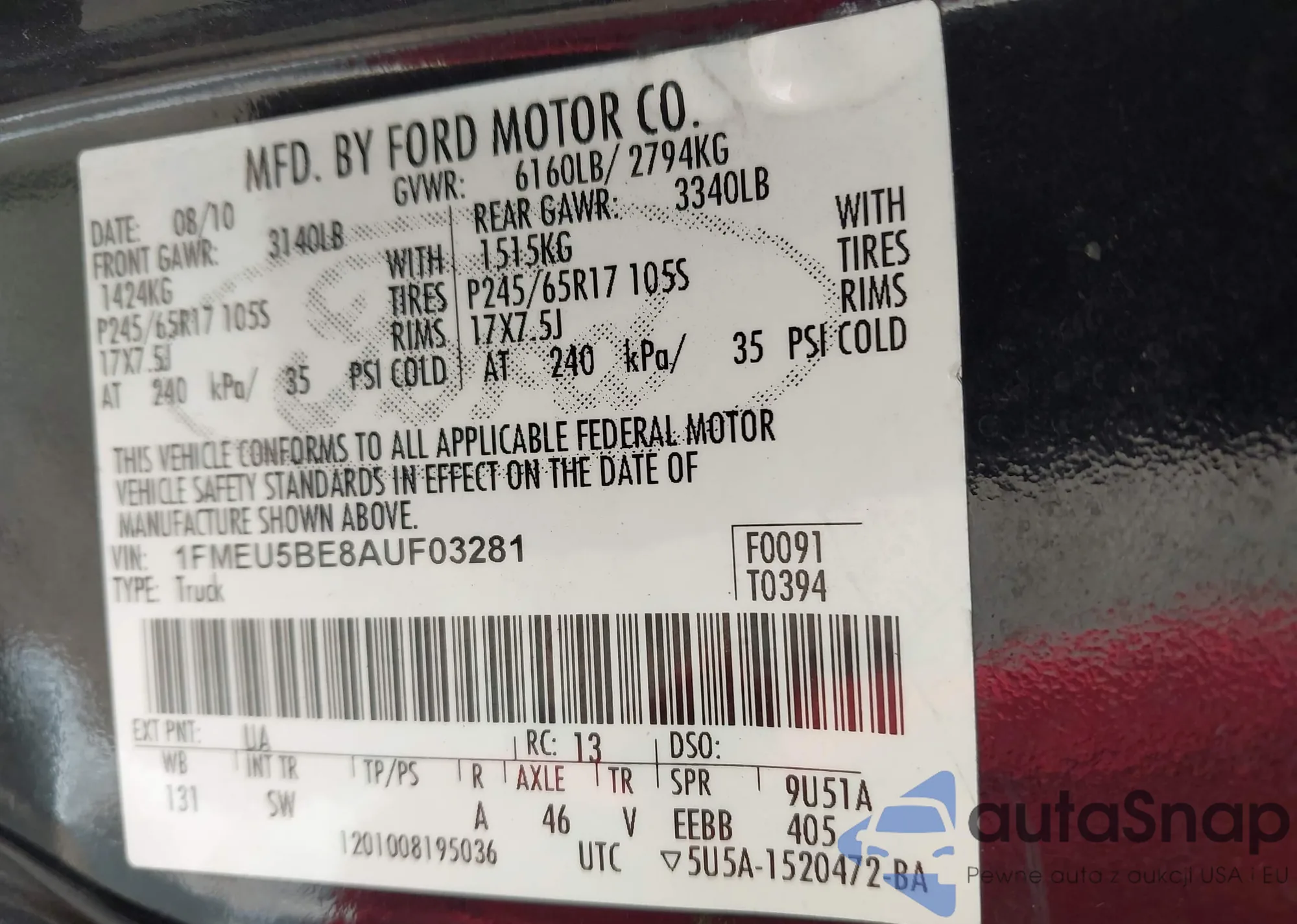 The car Ford Explorer Sport Trac 2010 (VIN 1FMEU5BE8AUF03281) is sold by an unverified seller. We recommend checking the Carfax report and confirming registration possibilities before purchase.