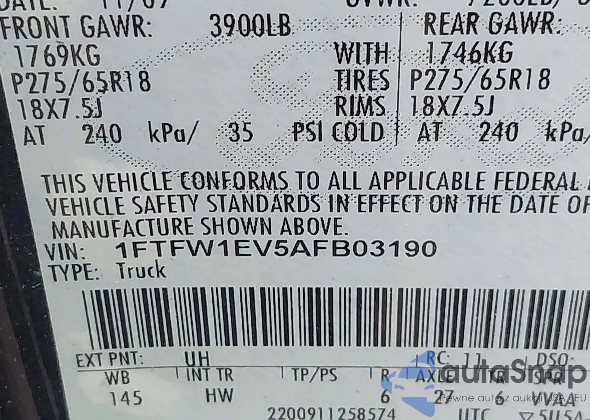 VIN: 1FTFW1EV5AFB03190