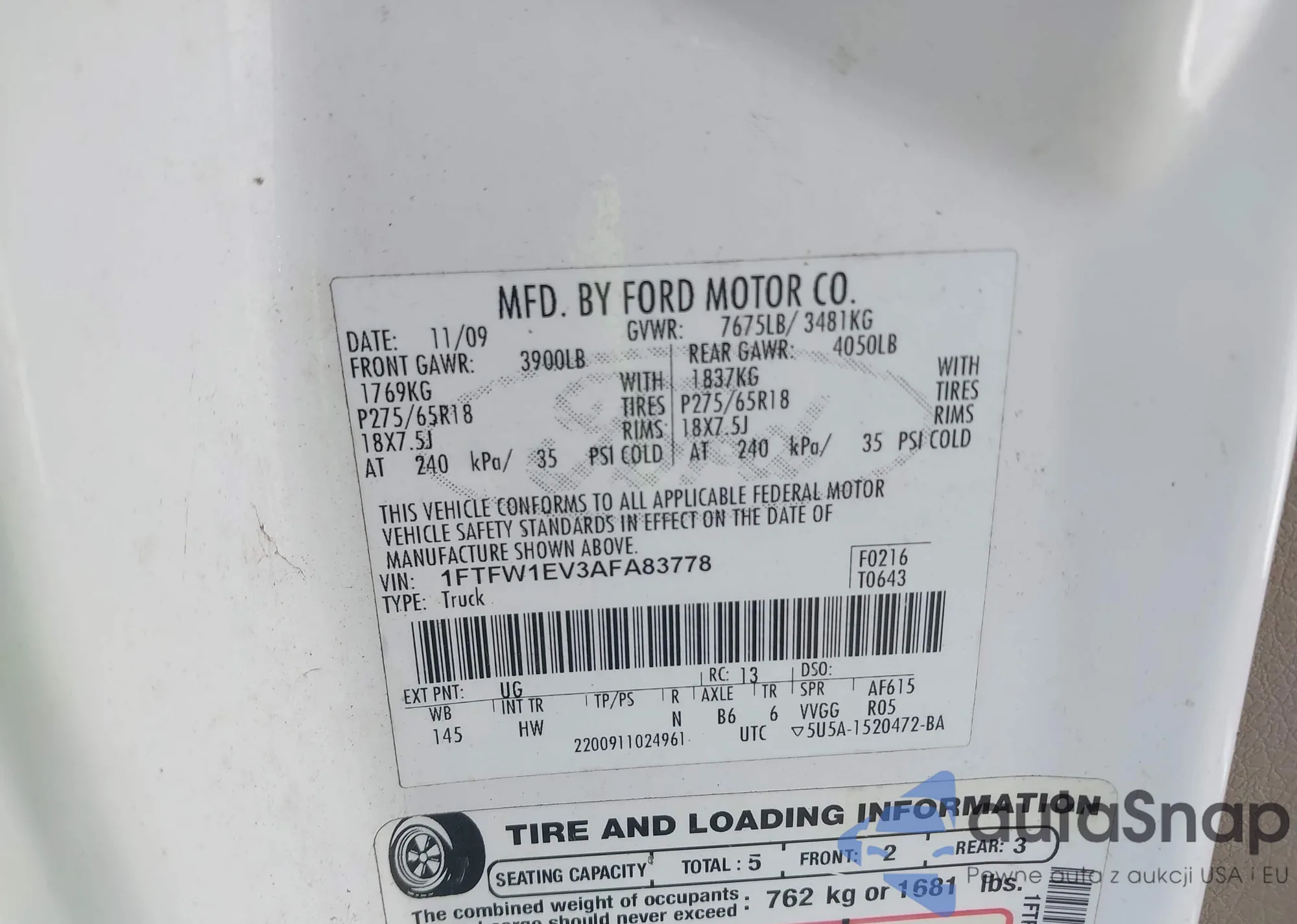 VIN: 1FTFW1EV3AFA83778
