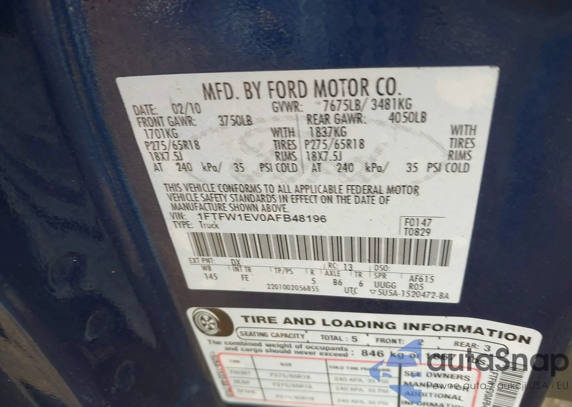 VIN: 1FTFW1EV0AFB48196