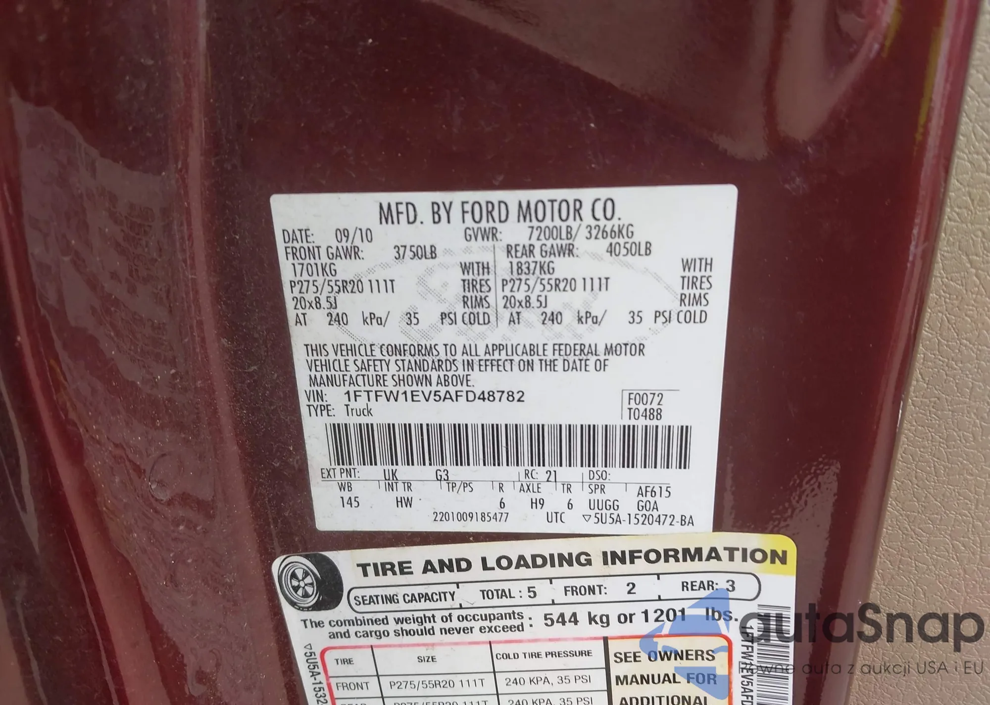 VIN: 1FTFW1EV5AFD48782