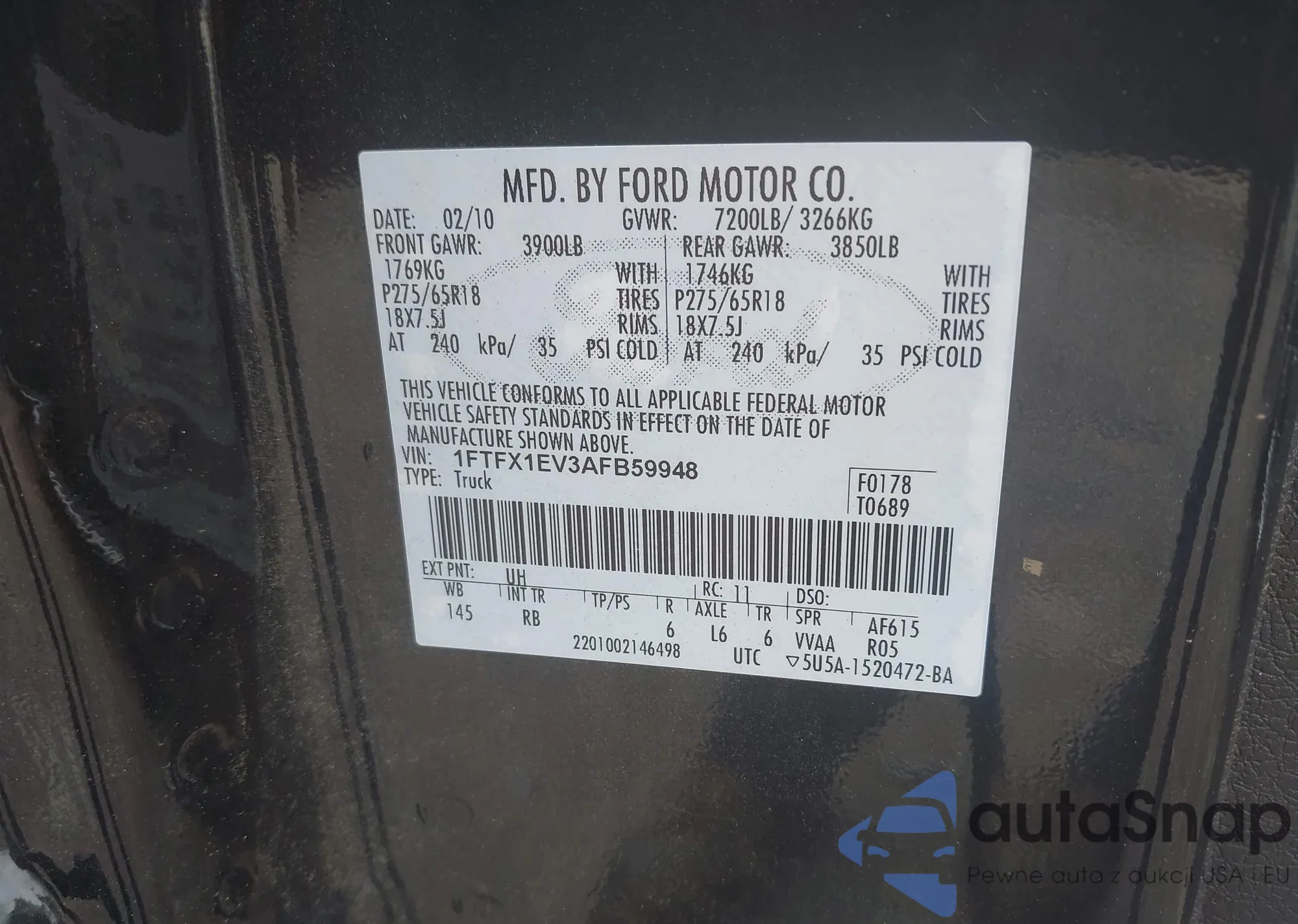 VIN: 1FTFX1EV3AFB59948
