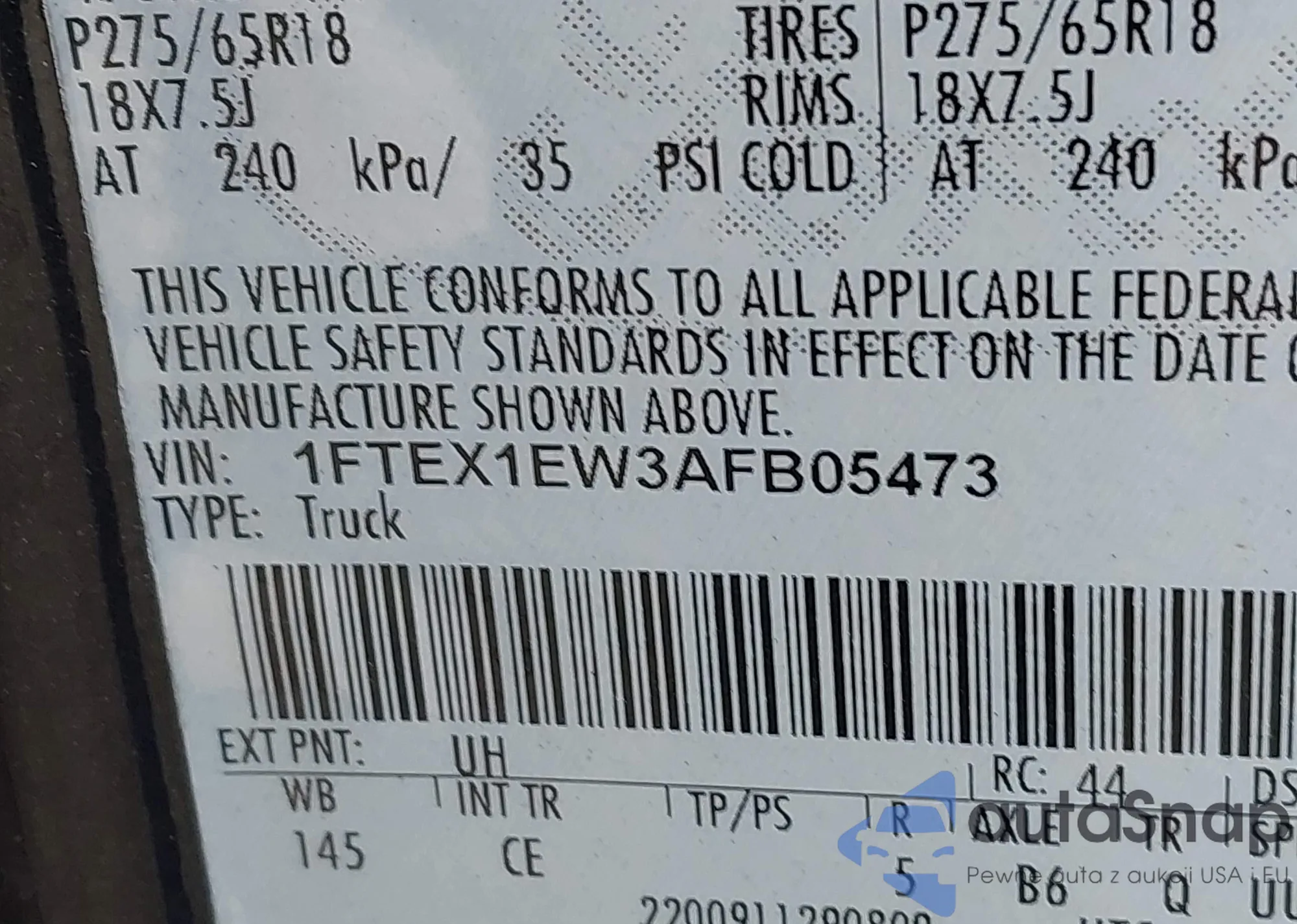 The car Ford F-150 2010 (VIN 1FTEX1EW3AFB05473) has not been auctioned before. The documents are clean, and the mileage matches or is below the market average. Sold by an insurance company – we recommend purchase. Delivery to the port will take approx. 6–8 weeks.
