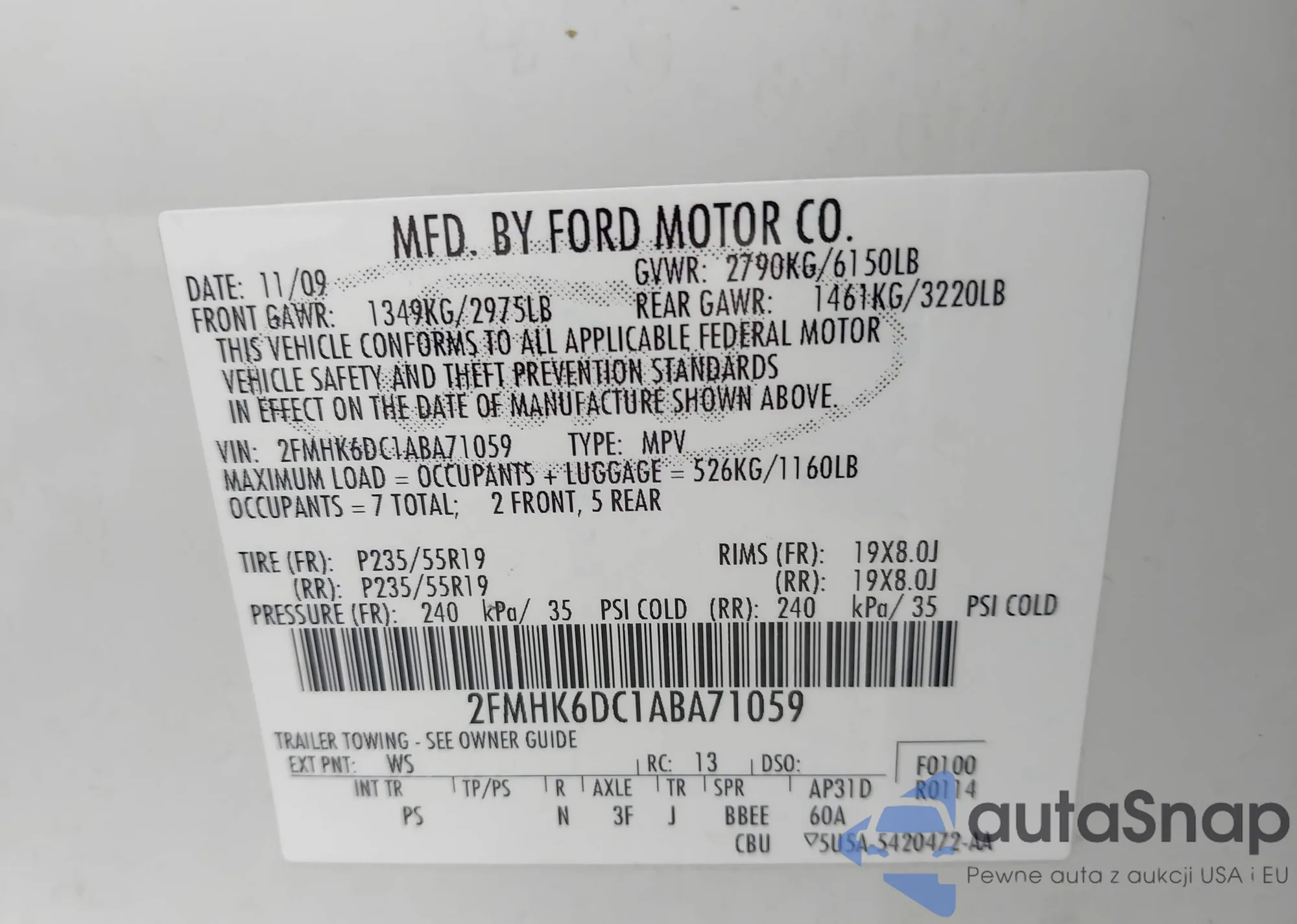 • VIN: 2FMHK6DC1ABA71059