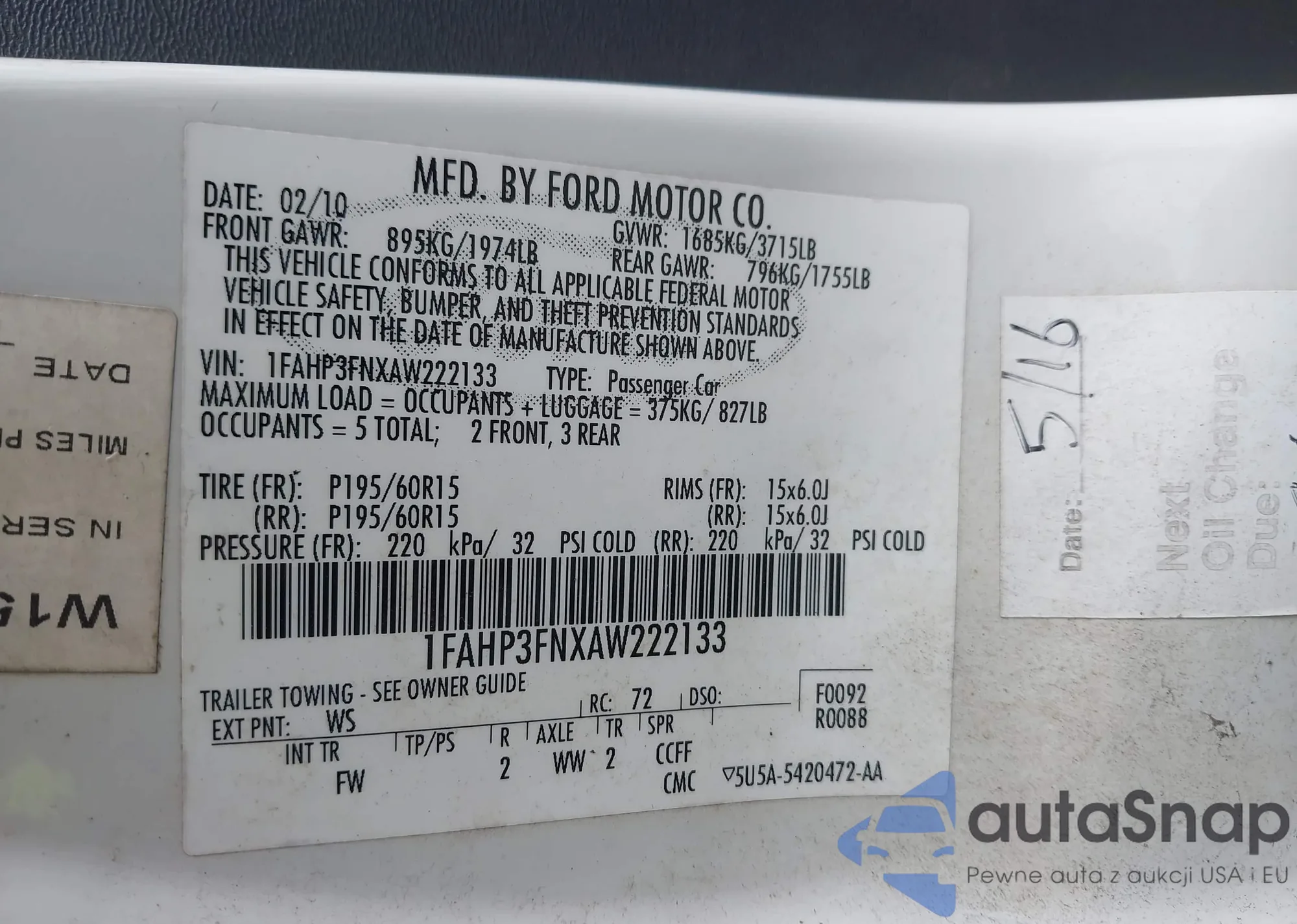 • VIN: 1FAHP3FNXAW222133