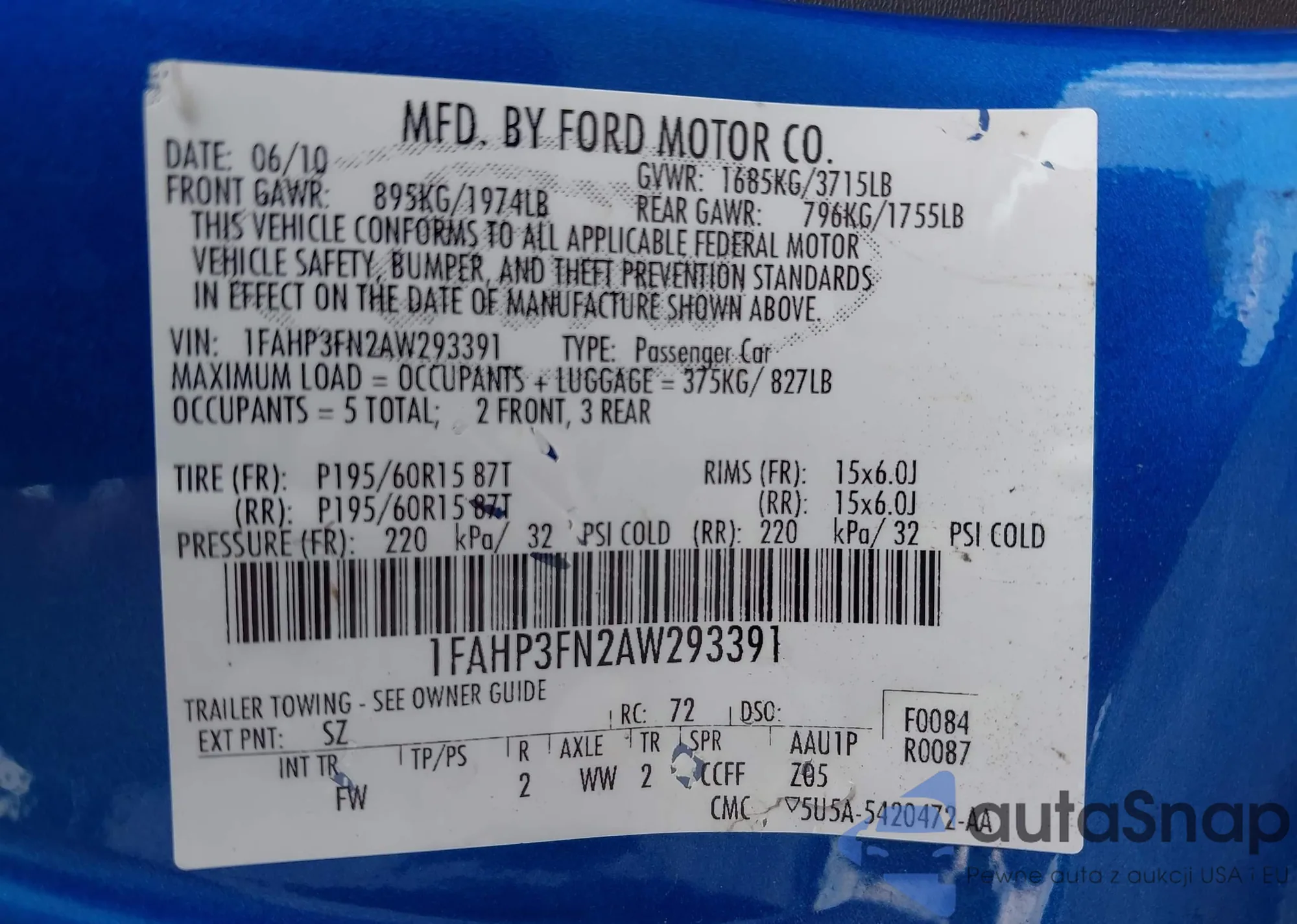 • VIN: 1FAHP3FN2AW293391