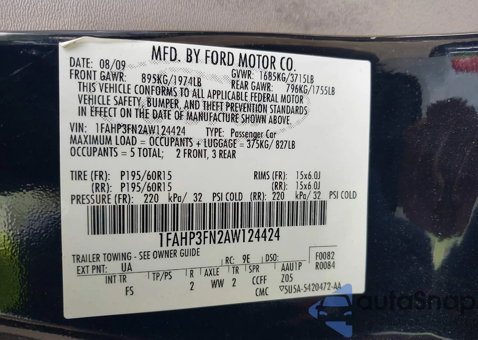 VIN: 1FAHP3FN2AW124424