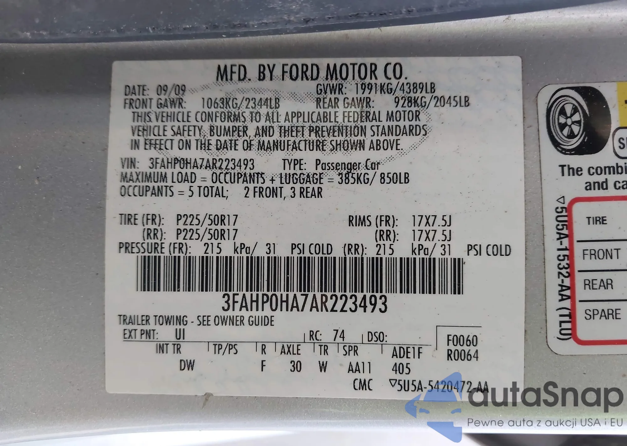 VIN: 3FAHP0HA7AR223493