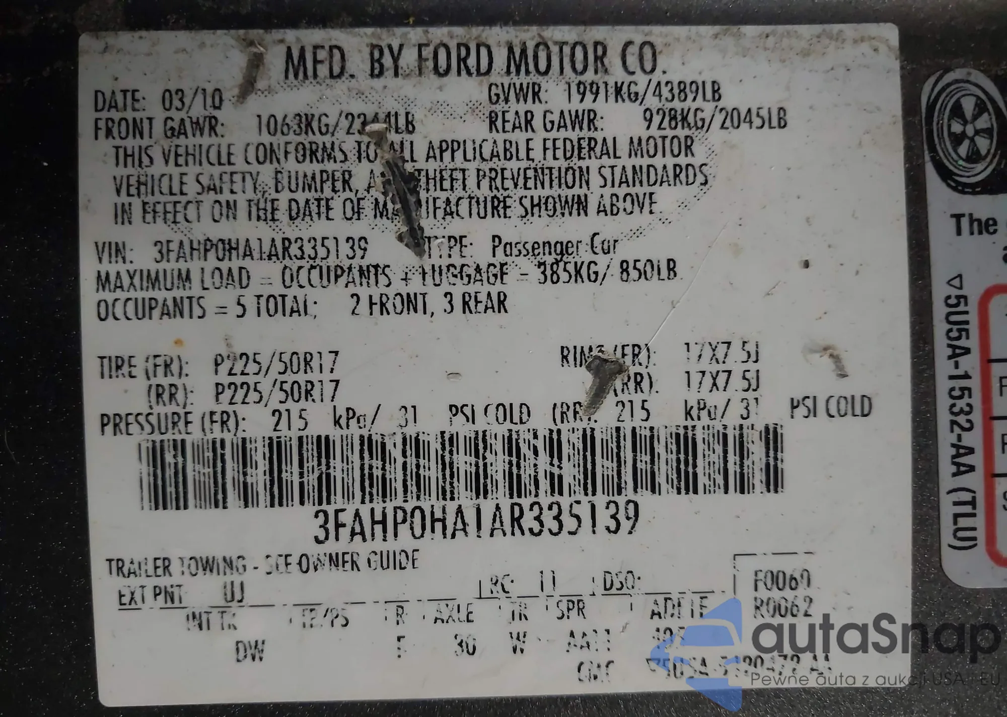 VIN: 3FAHP0HA1AR335139