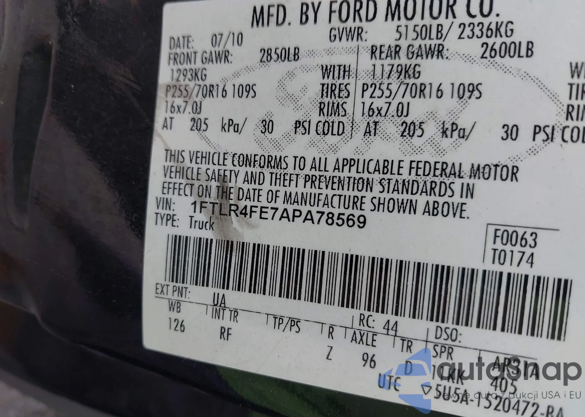 VIN: 1FTLR4FE7APA78569