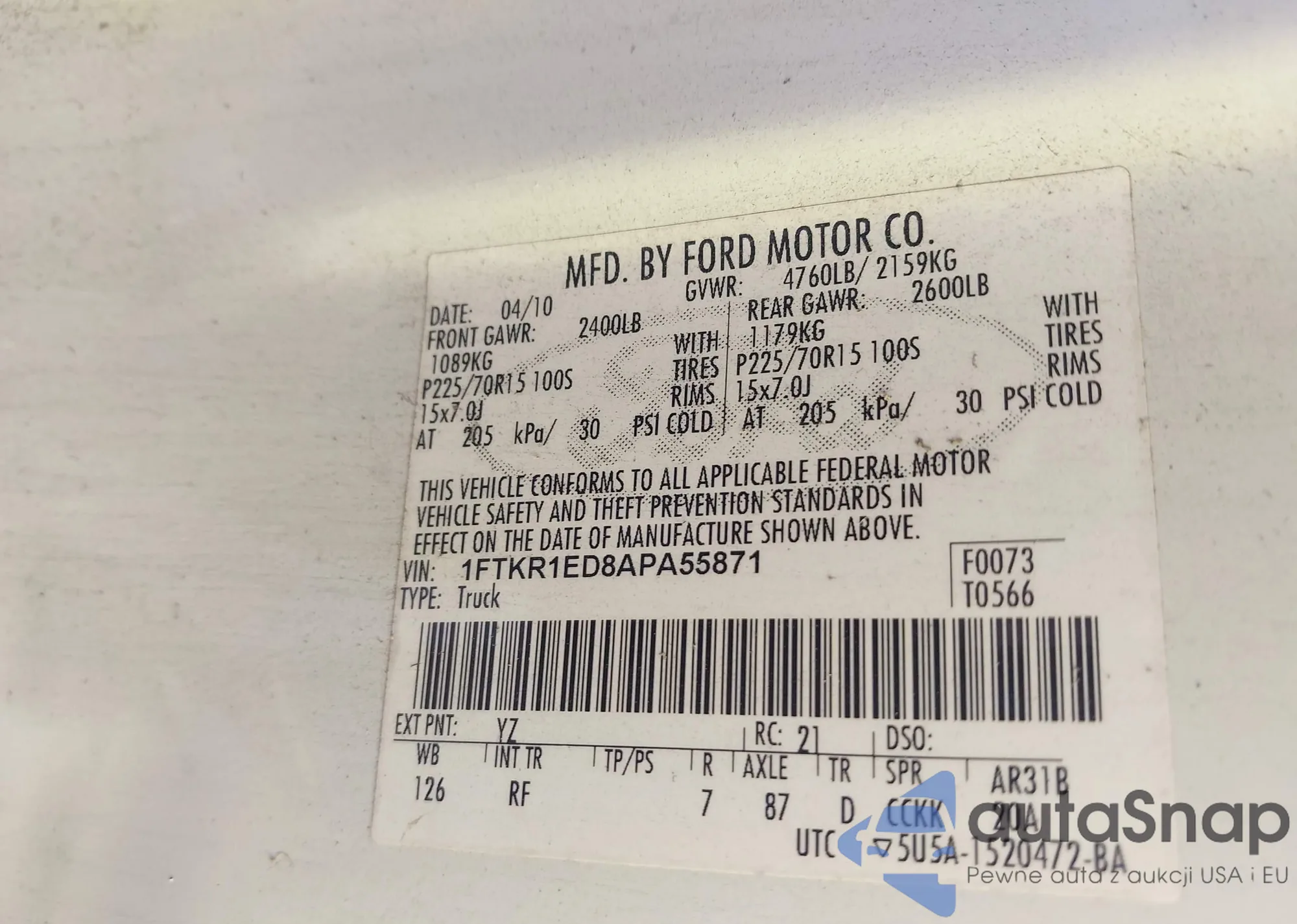 VIN: 1FTKR1ED8APA55871