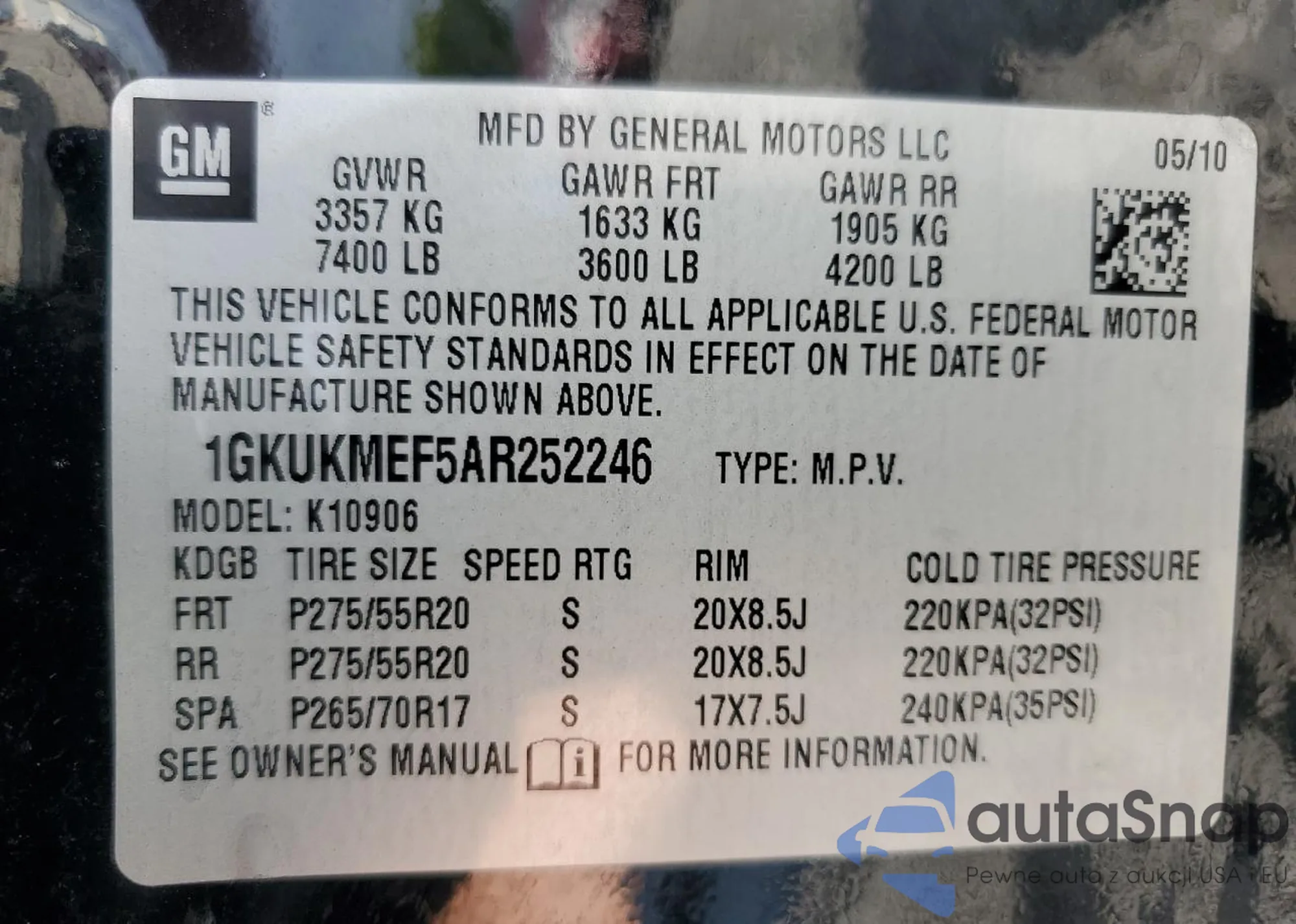 VIN: 1GKUKMEF5AR252246