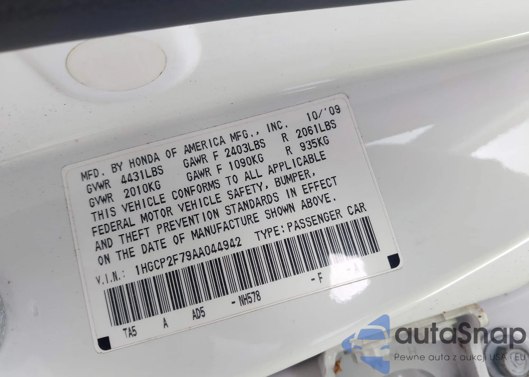 VIN: 1HGCP2F79AA044942