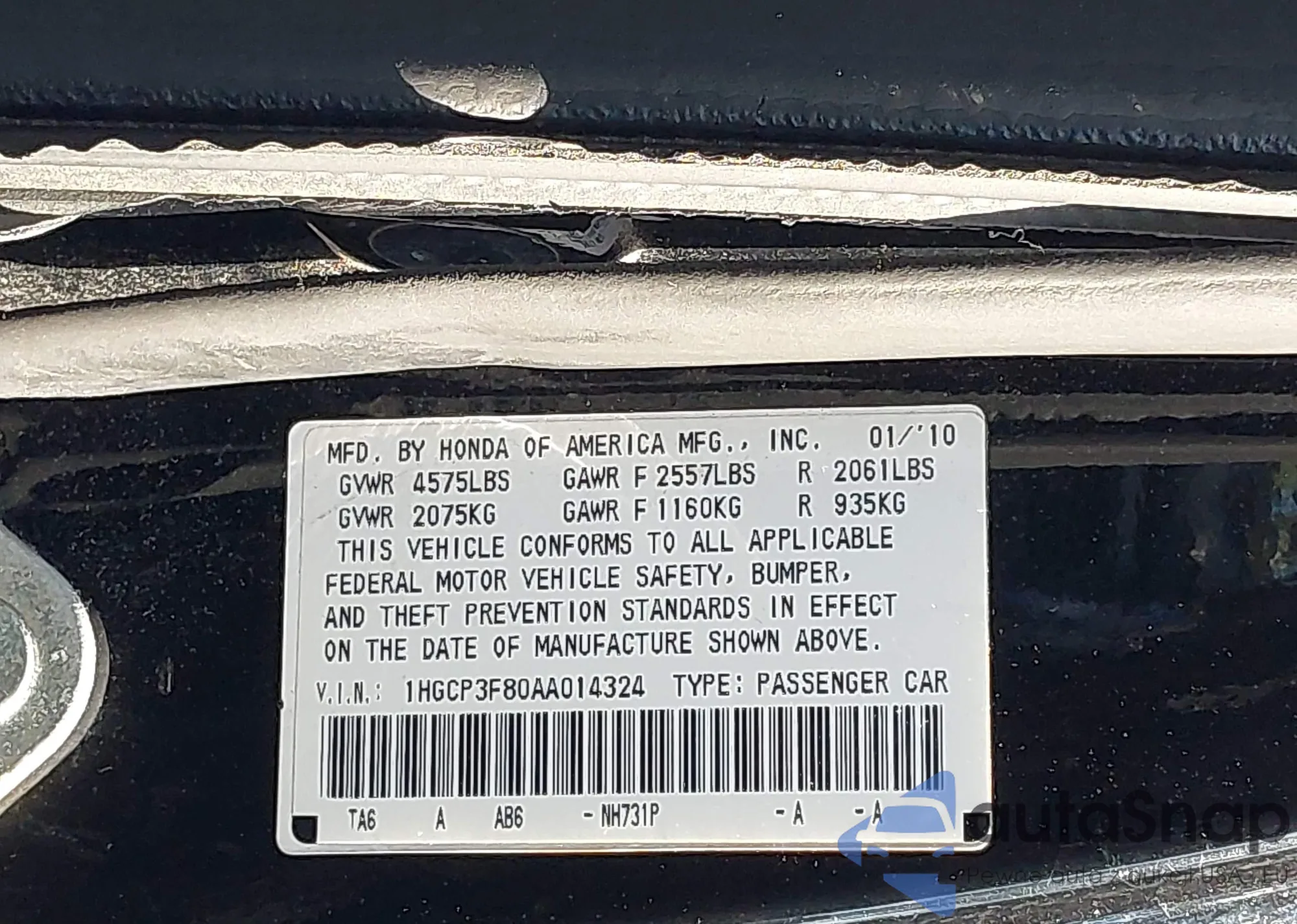 • VIN: 1HGCP3F80AA014324