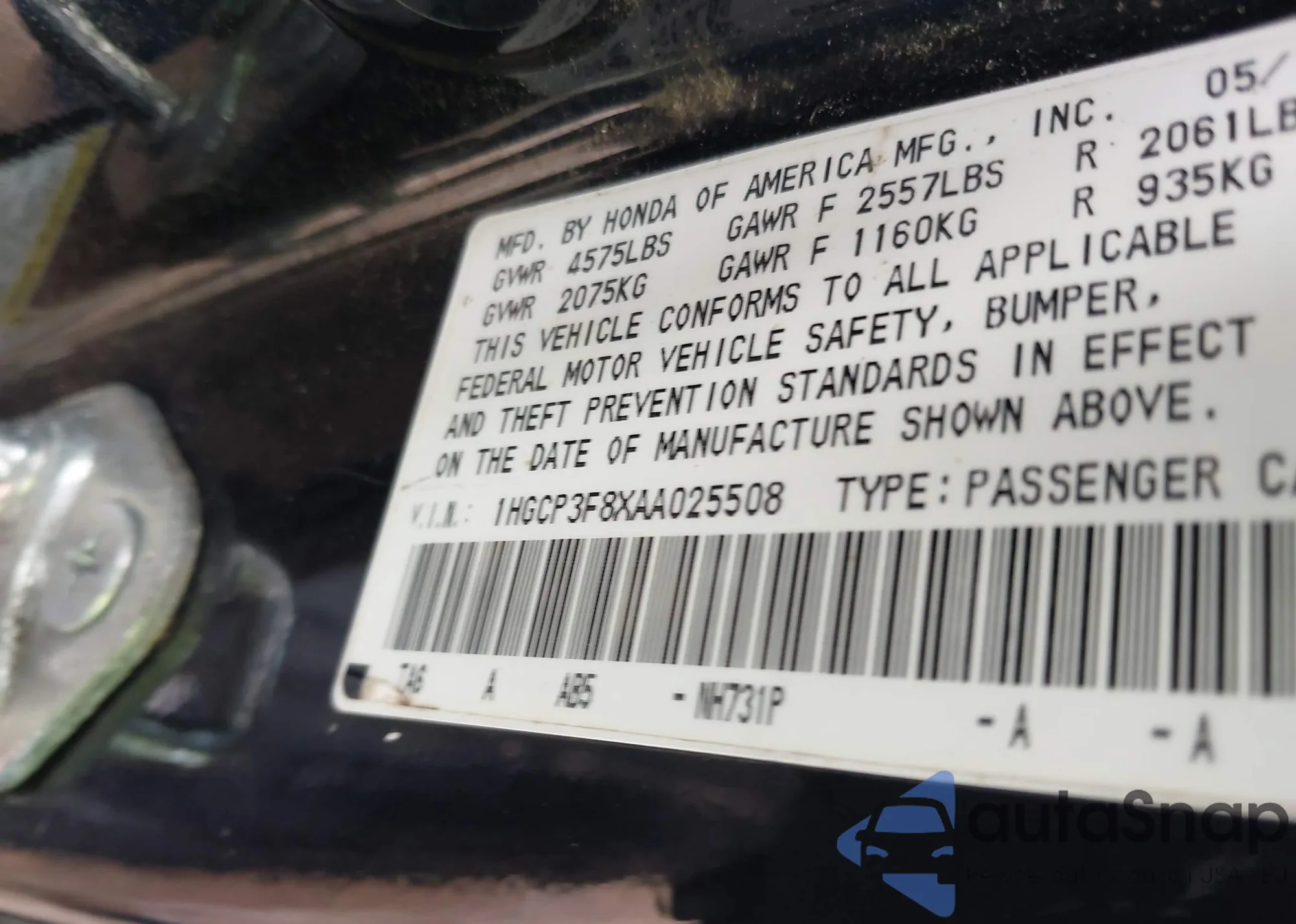 VIN: 1HGCP3F8XAA025508