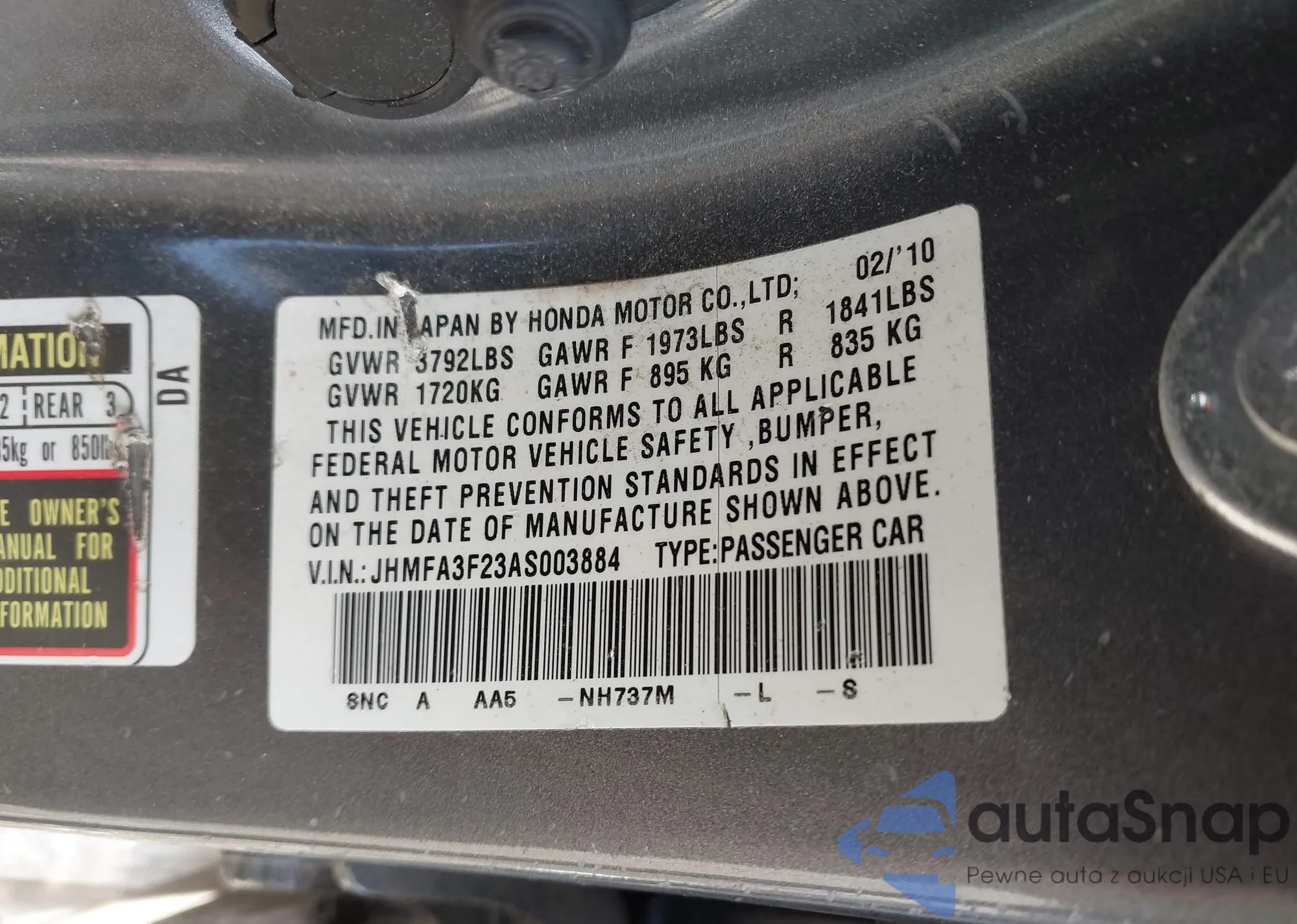 VIN: JHMFA3F23AS003884