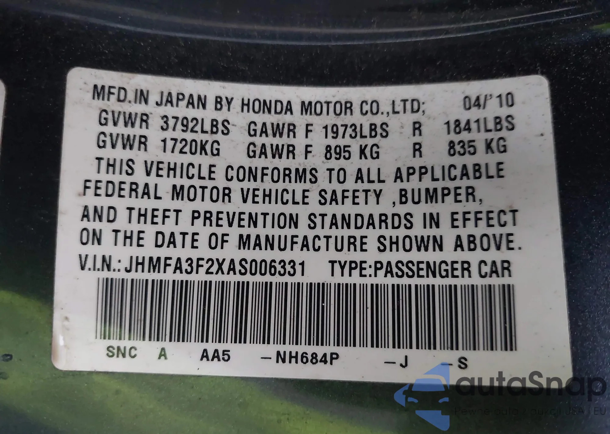 VIN: JHMFA3F2XAS006331
