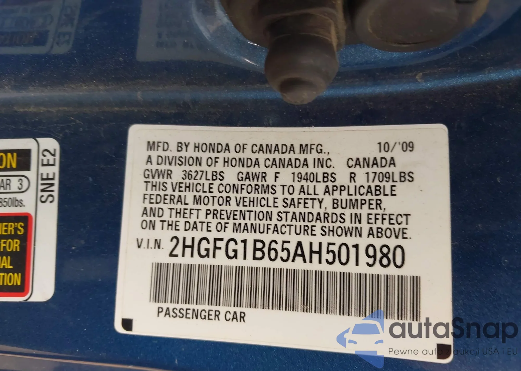 The car Honda Civic 2010 (VIN 2HGFG1B65AH501980) has not been auctioned before. The documents are clean, and the mileage matches or is below the market average. Sold by an insurance company – we recommend purchase. Delivery to the port will take approx. 6–8 weeks.