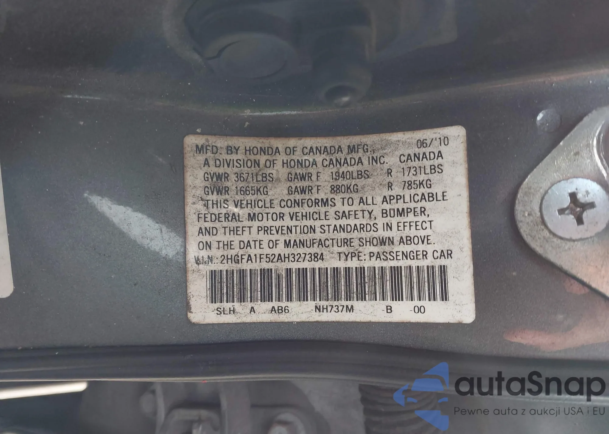 VIN: 2HGFA1F52AH327384