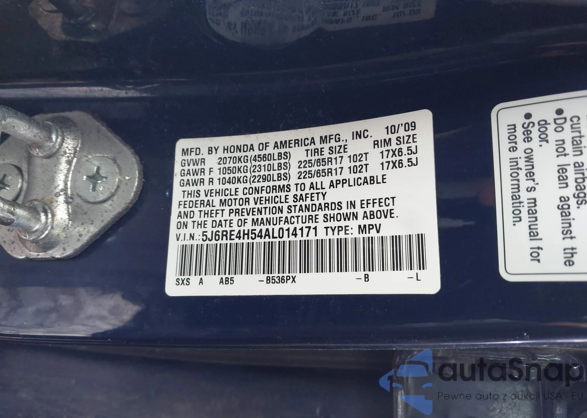 The car Honda CR-V 2010 (VIN 5J6RE4H54AL014171) has not been auctioned before. The documents are clean, and the mileage matches or is below the market average. Sold by an insurance company – we recommend purchase. Delivery to the port will take approx. 6–8 weeks.