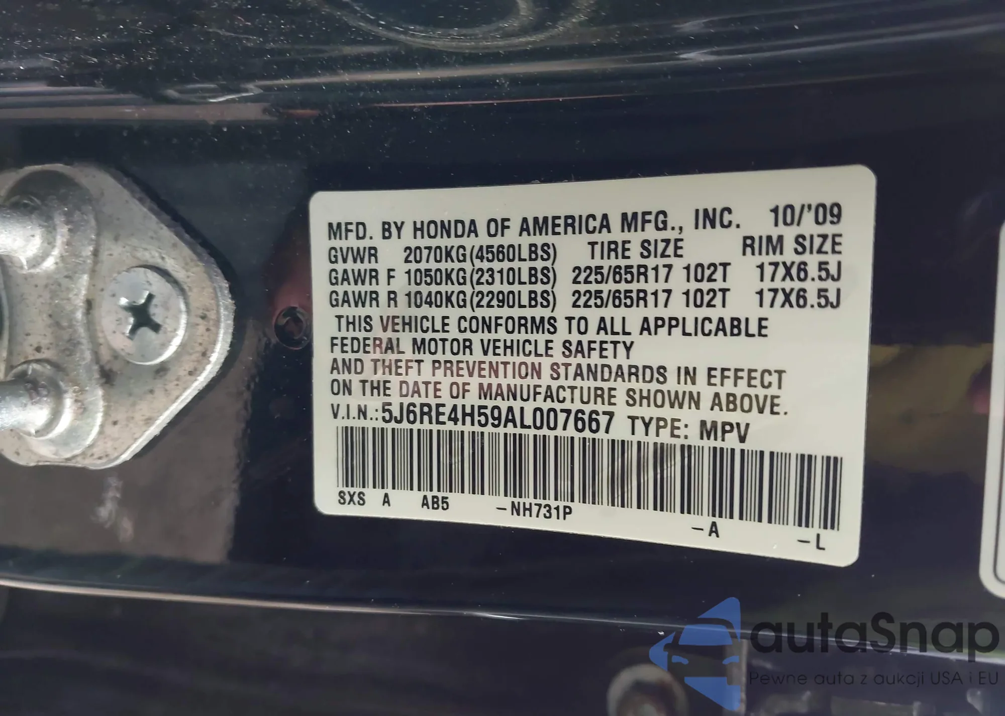 VIN: 5J6RE4H59AL007667