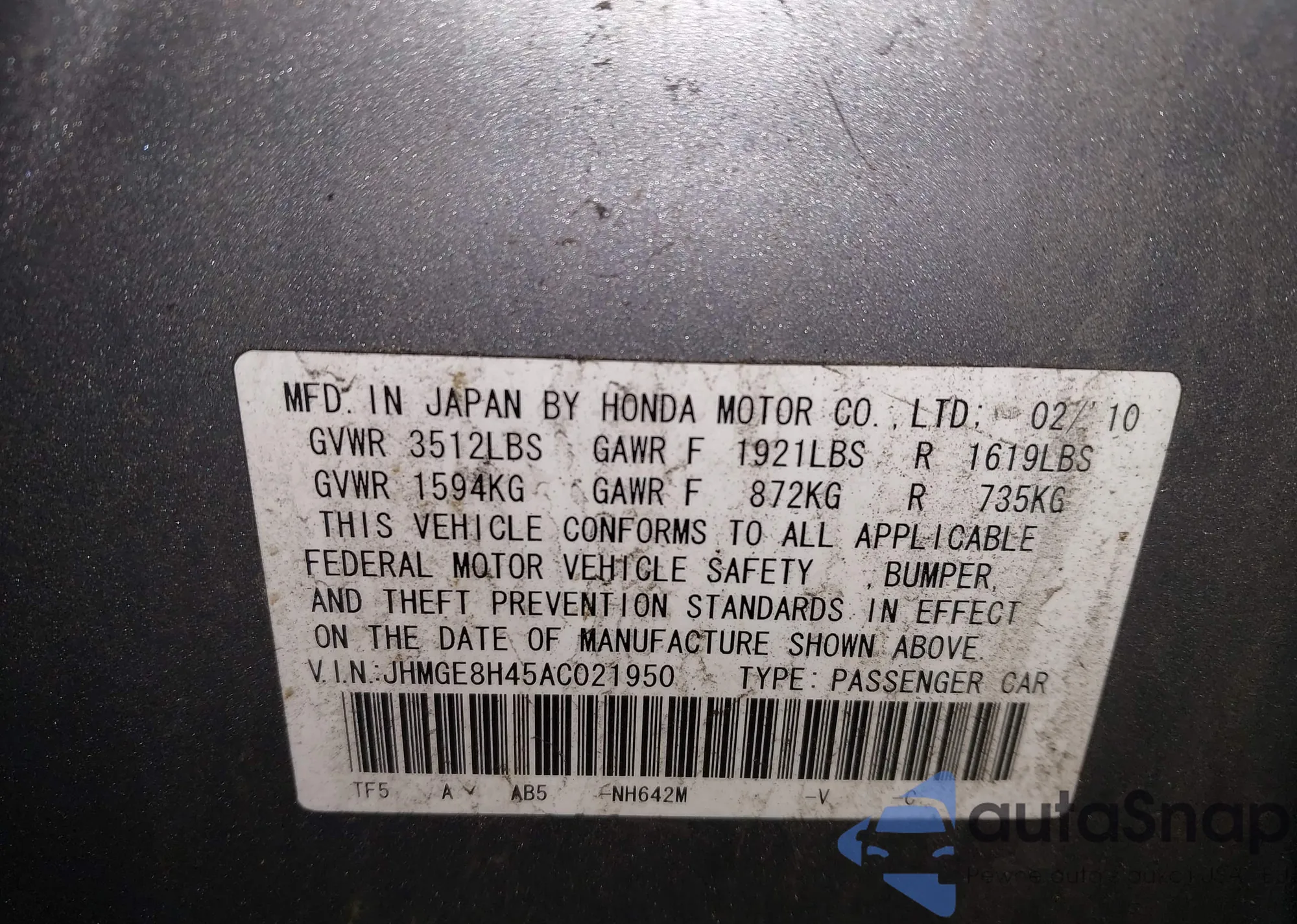 VIN: JHMGE8H45AC021950