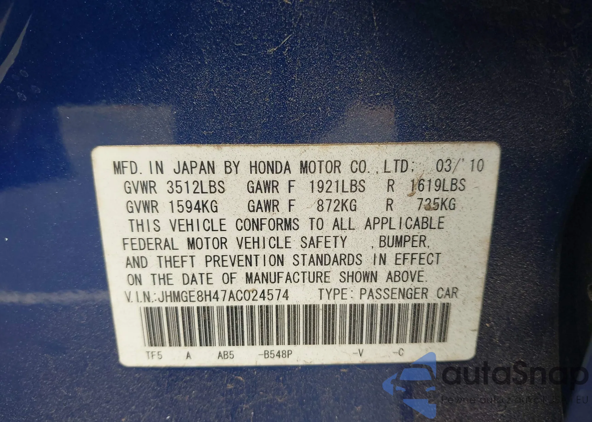 VIN: JHMGE8H47AC024574