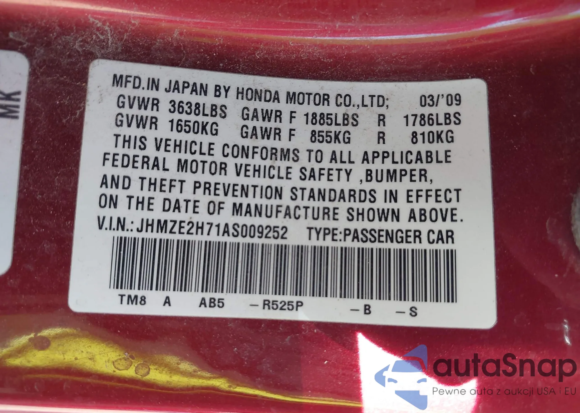 VIN: JHMZE2H71AS009252
