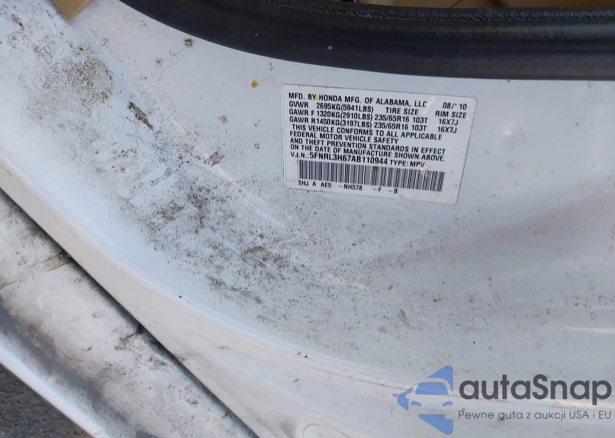 • VIN: 5FNRL3H67AB110944