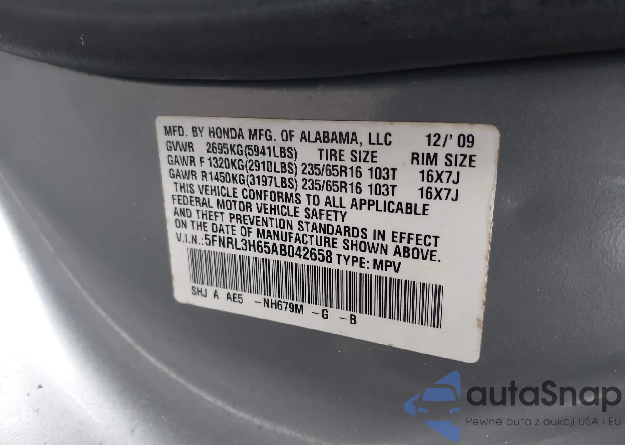 VIN: 5FNRL3H65AB042658