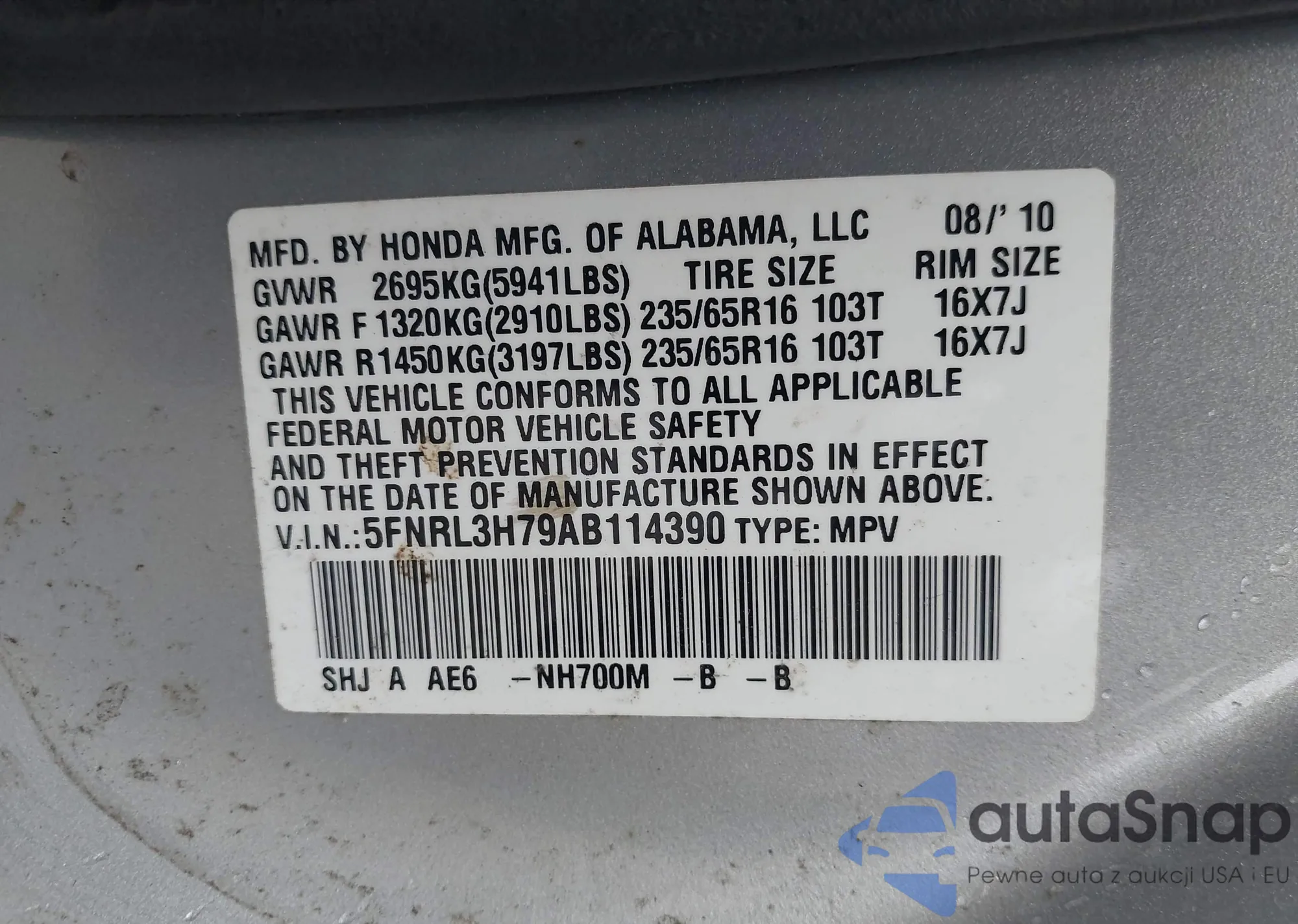 VIN: 5FNRL3H79AB114390
