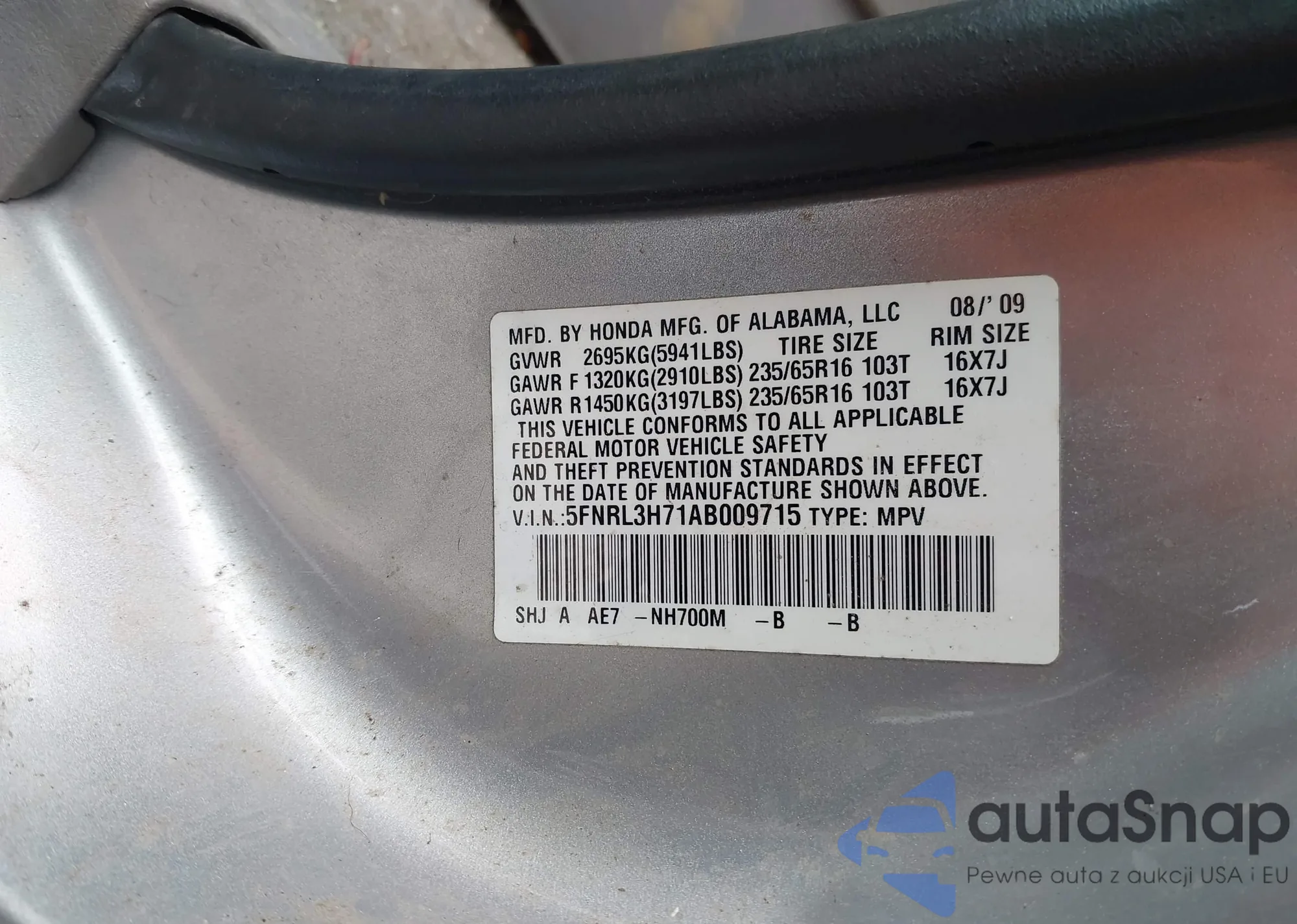 The car Honda Odyssey 2010 (VIN 5FNRL3H71AB009715) is sold by an unverified seller. We recommend checking the Carfax report and confirming registration possibilities before purchase.