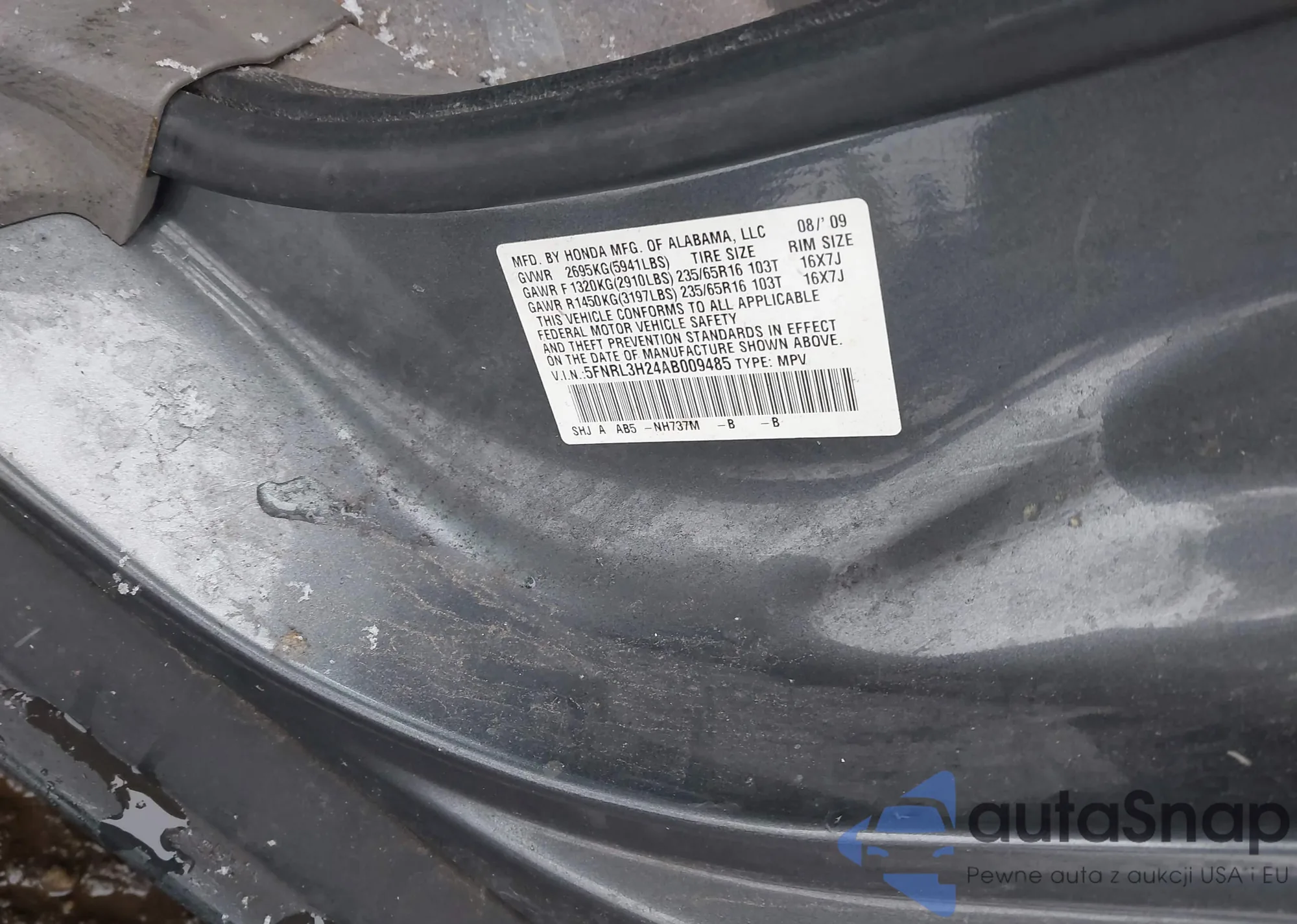 VIN: 5FNRL3H24AB009485