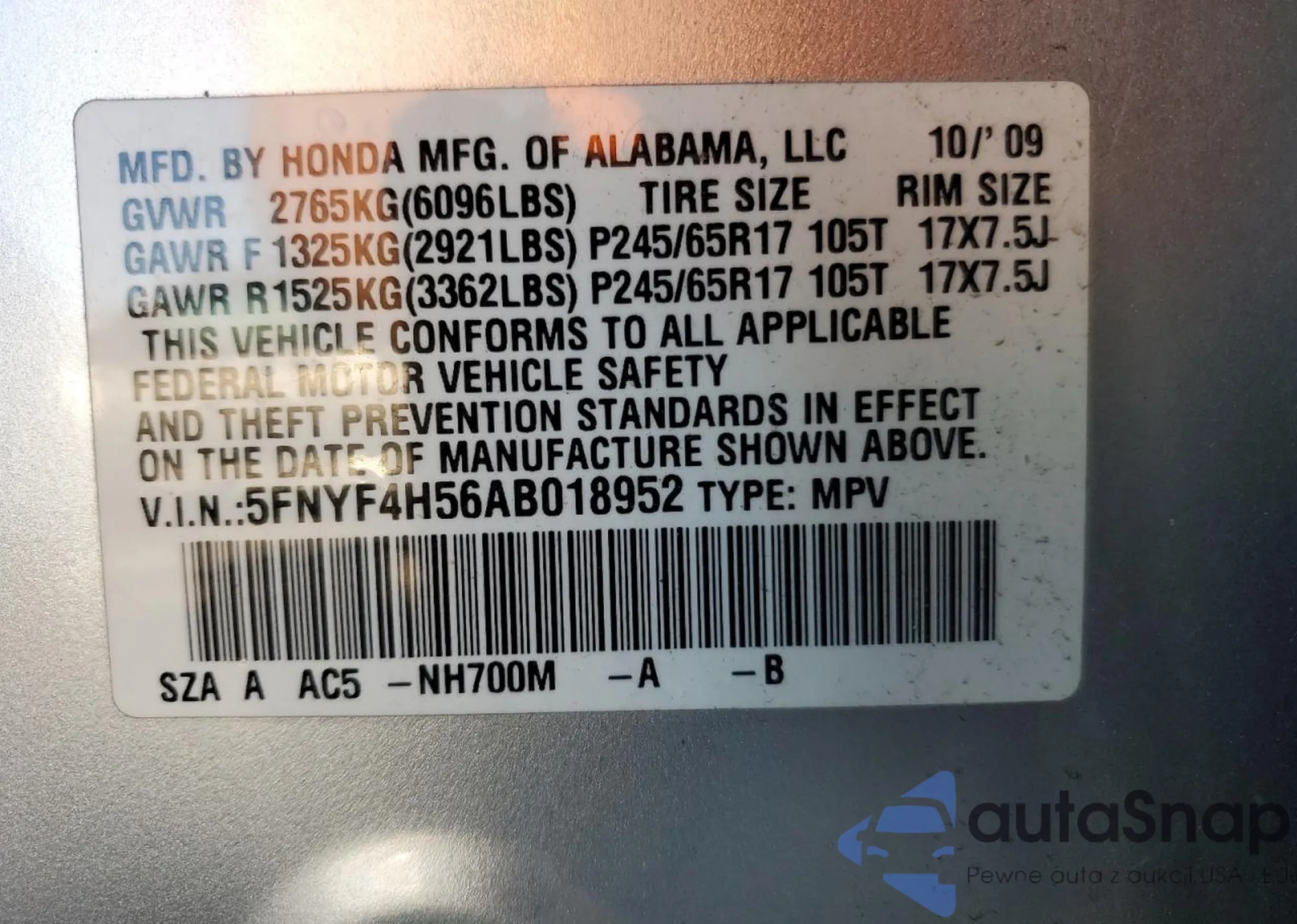 The car Honda Pilot 2010 (VIN 5FNYF4H56AB018952) has already been auctioned 0 times or is sold by an unverified seller. We recommend checking the Carfax report and confirming registration possibilities before purchase.