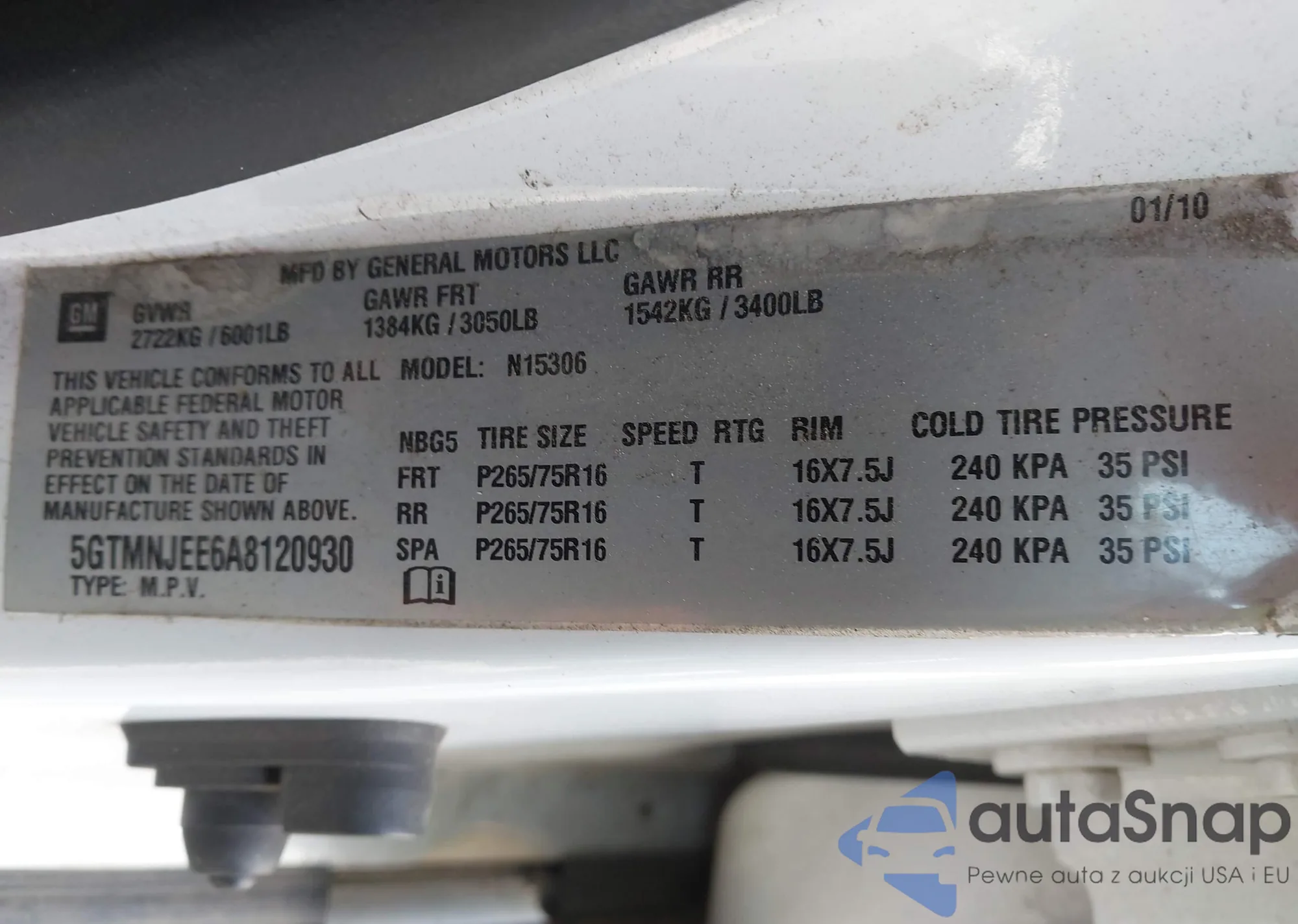 • VIN: 5GTMNJEE6A8120930