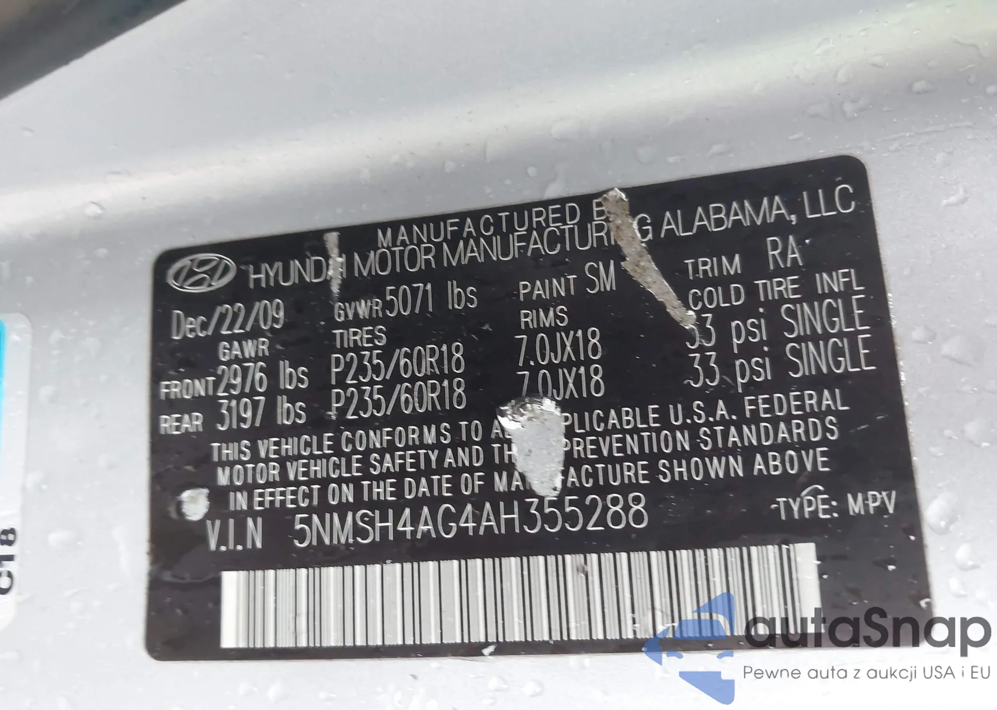 VIN: 5NMSH4AG4AH355288