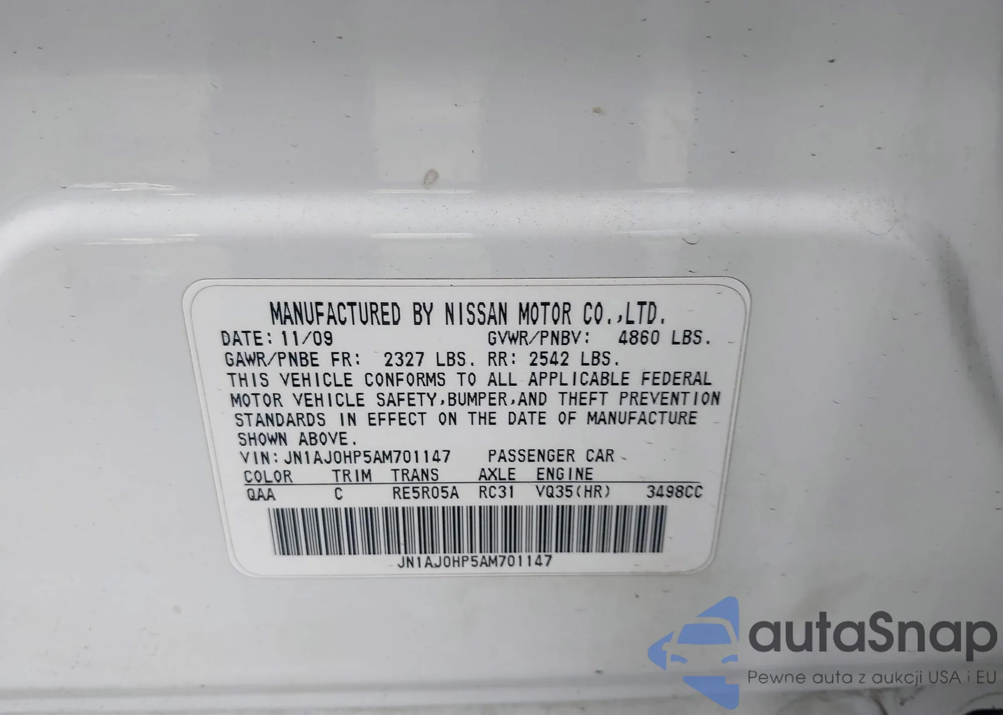 VIN: JN1AJ0HP5AM701147