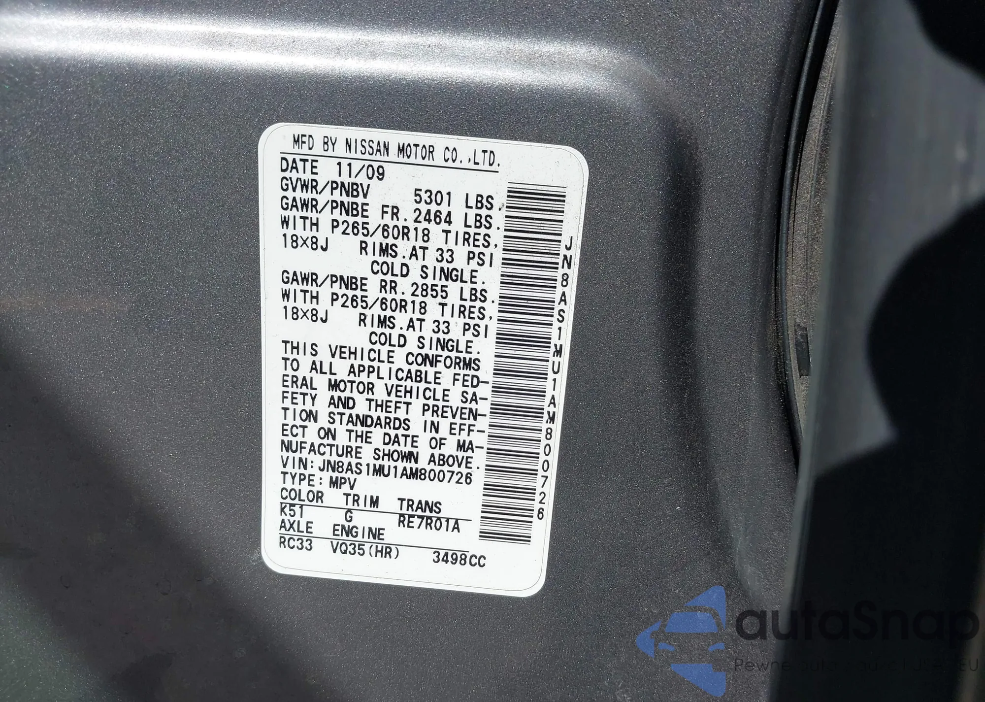 The car Infiniti FX 2010 (VIN JN8AS1MU1AM800726) has not been auctioned before. The documents are clean, and the mileage matches or is below the market average. Sold by an insurance company – we recommend purchase. Delivery to the port will take approx. 6–8 weeks.