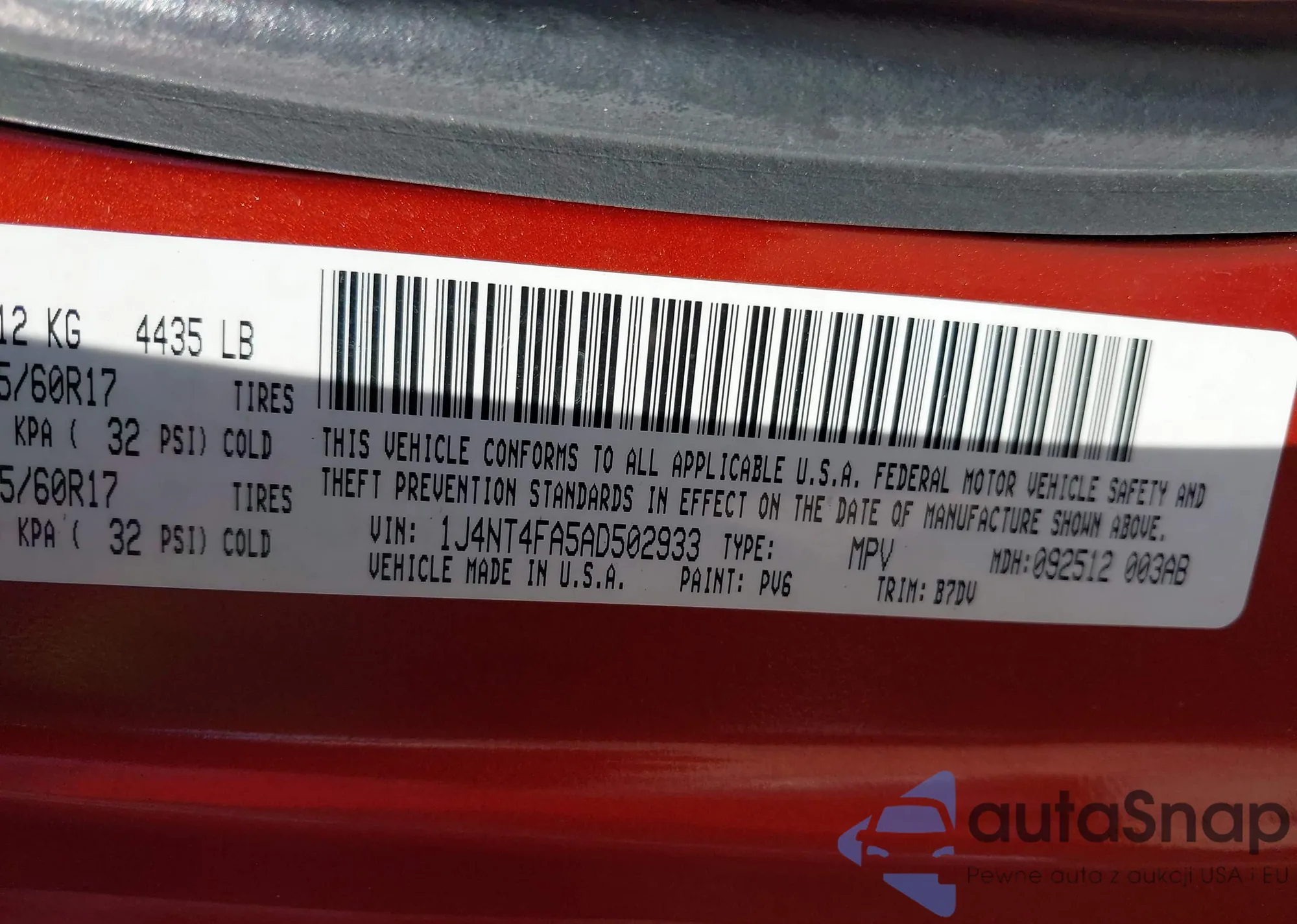 VIN: 1J4NT4FA5AD502933