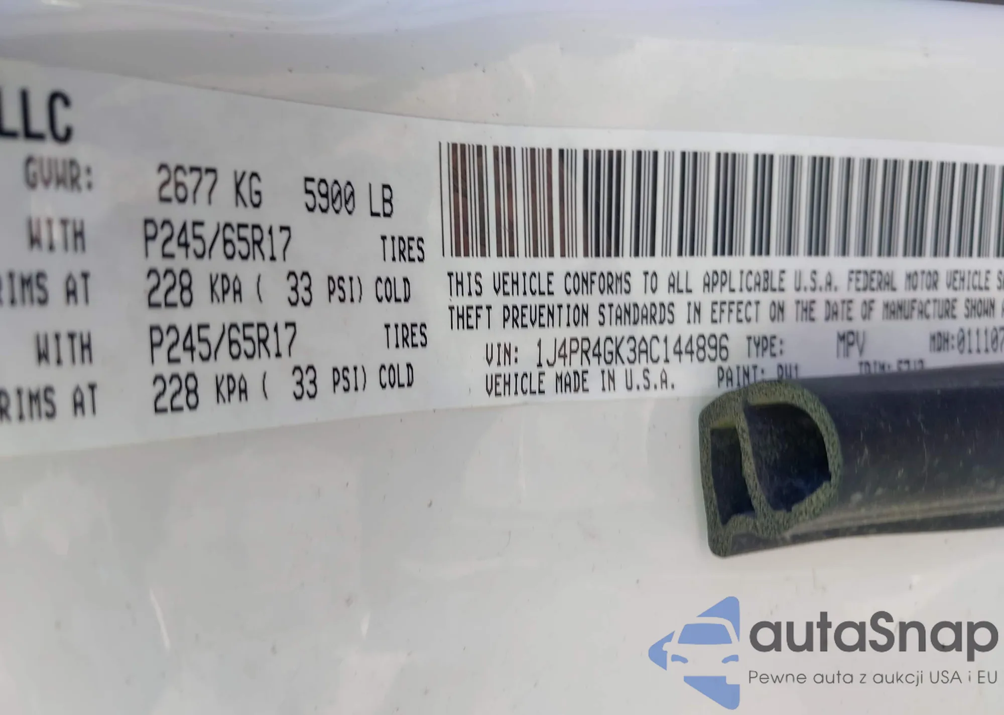 VIN: 1J4PR4GK3AC144896