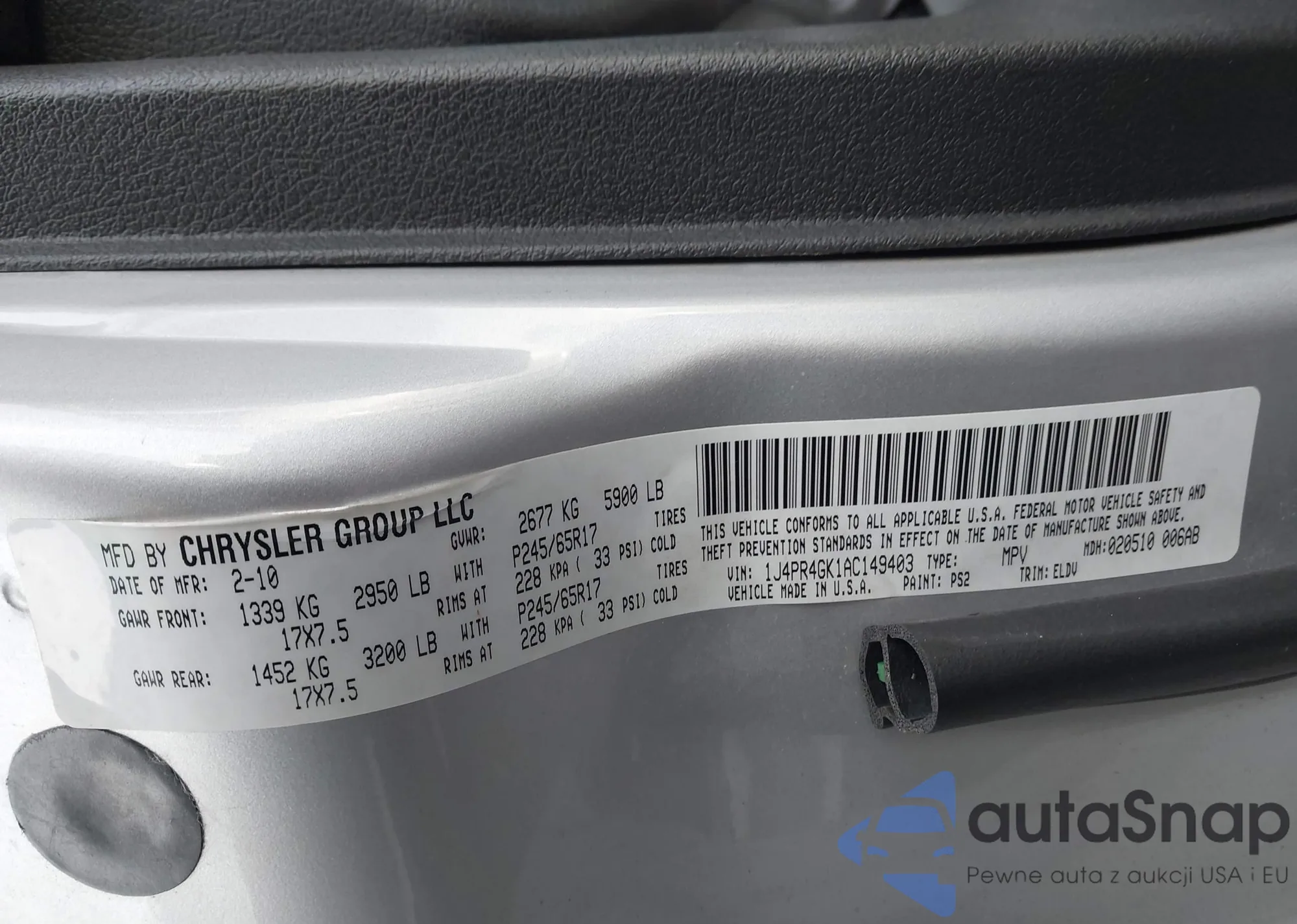 VIN: 1J4PR4GK1AC149403