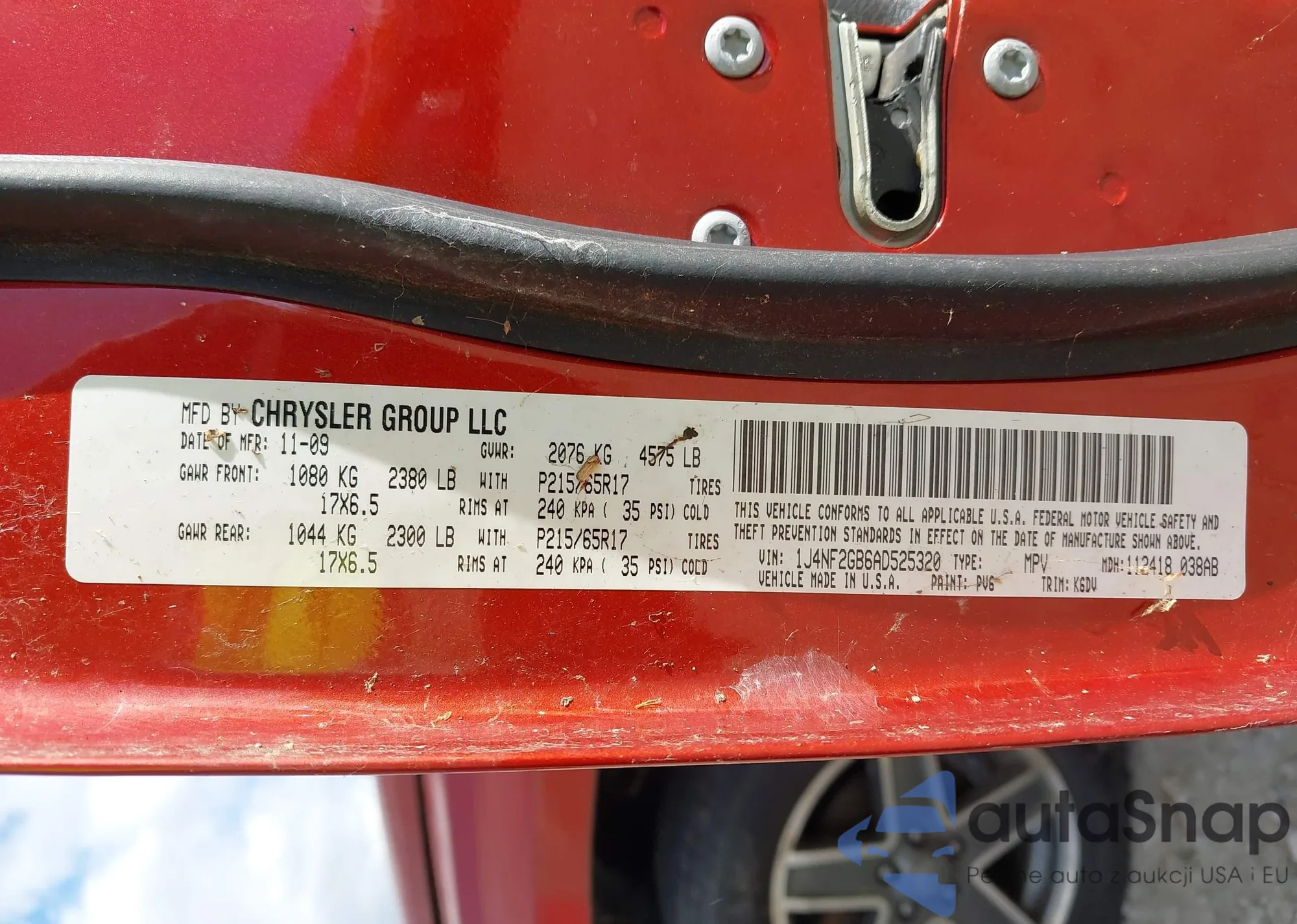 VIN: 1J4NF2GB6AD525320