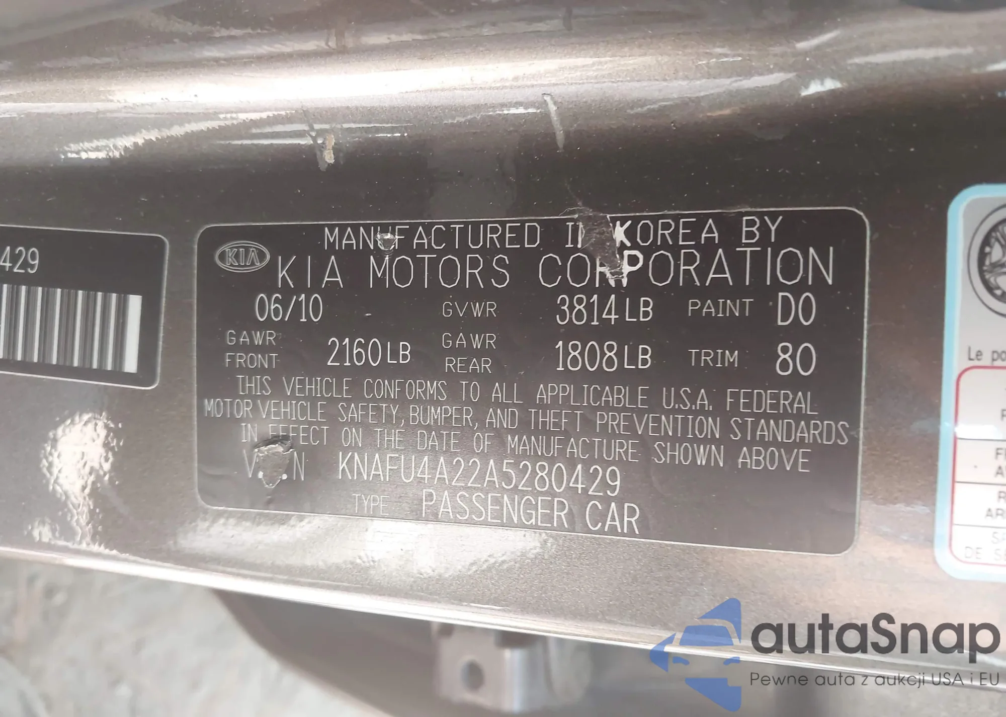 VIN: KNAFU4A22A5280429