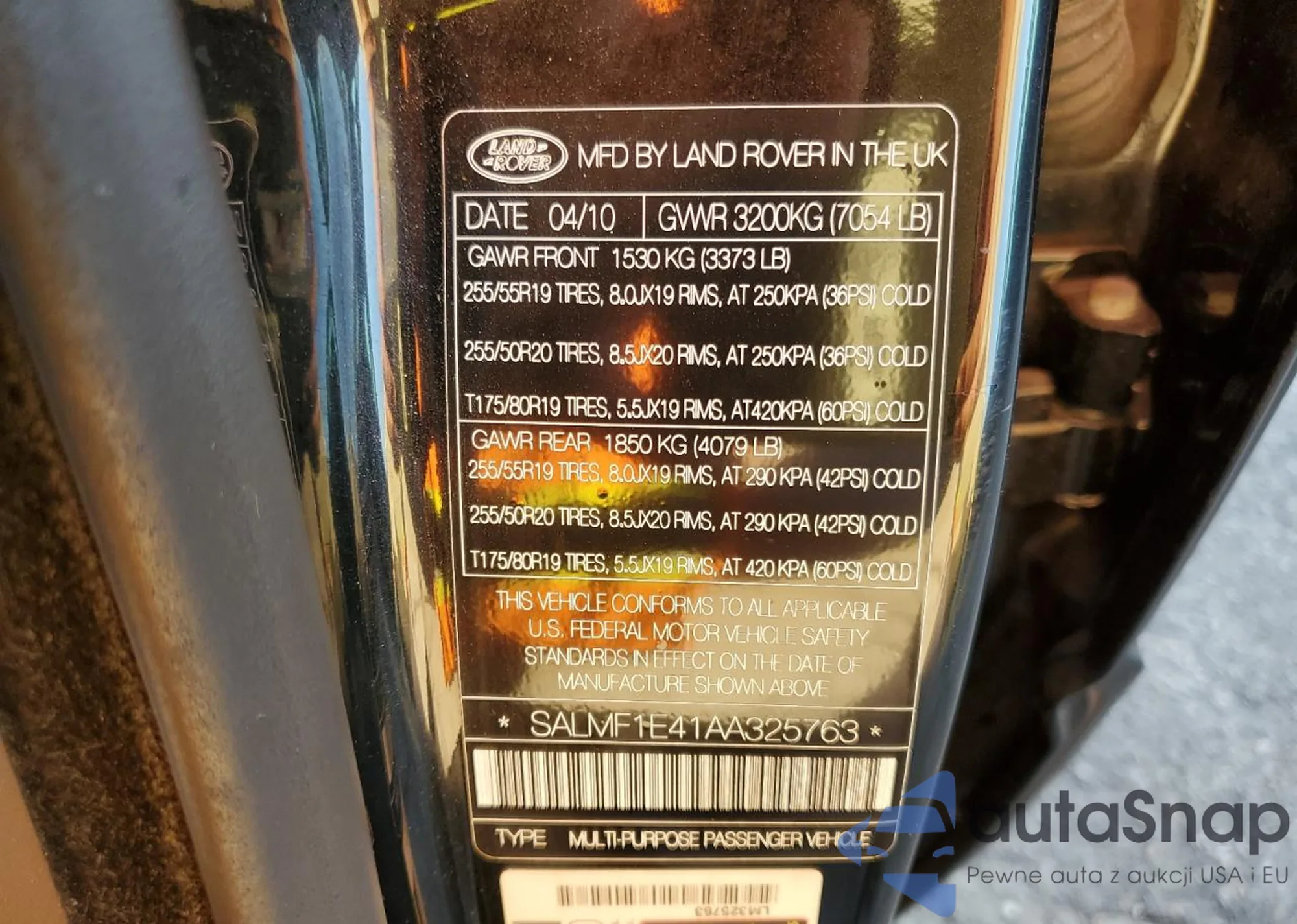 • VIN: SALMF1E41AA325763