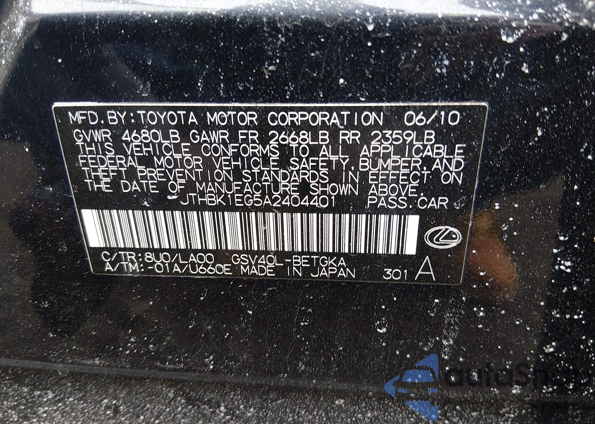 The car Lexus ES 2010 (VIN JTHBK1EG5A2404401) has not been auctioned before. The documents are clean, and the mileage matches or is below the market average. Sold by an insurance company – we recommend purchase. Delivery to the port will take approx. 6–8 weeks.