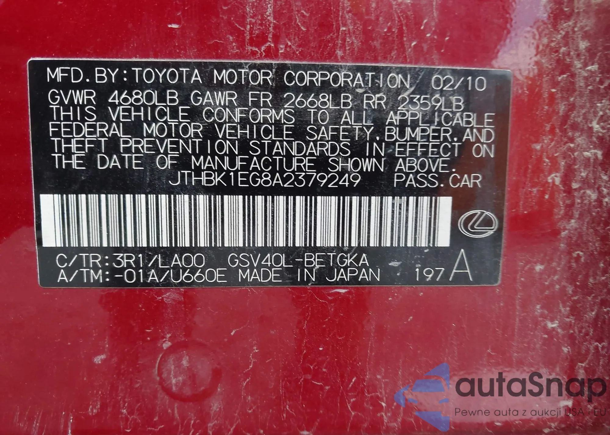 VIN: JTHBK1EG8A2379249