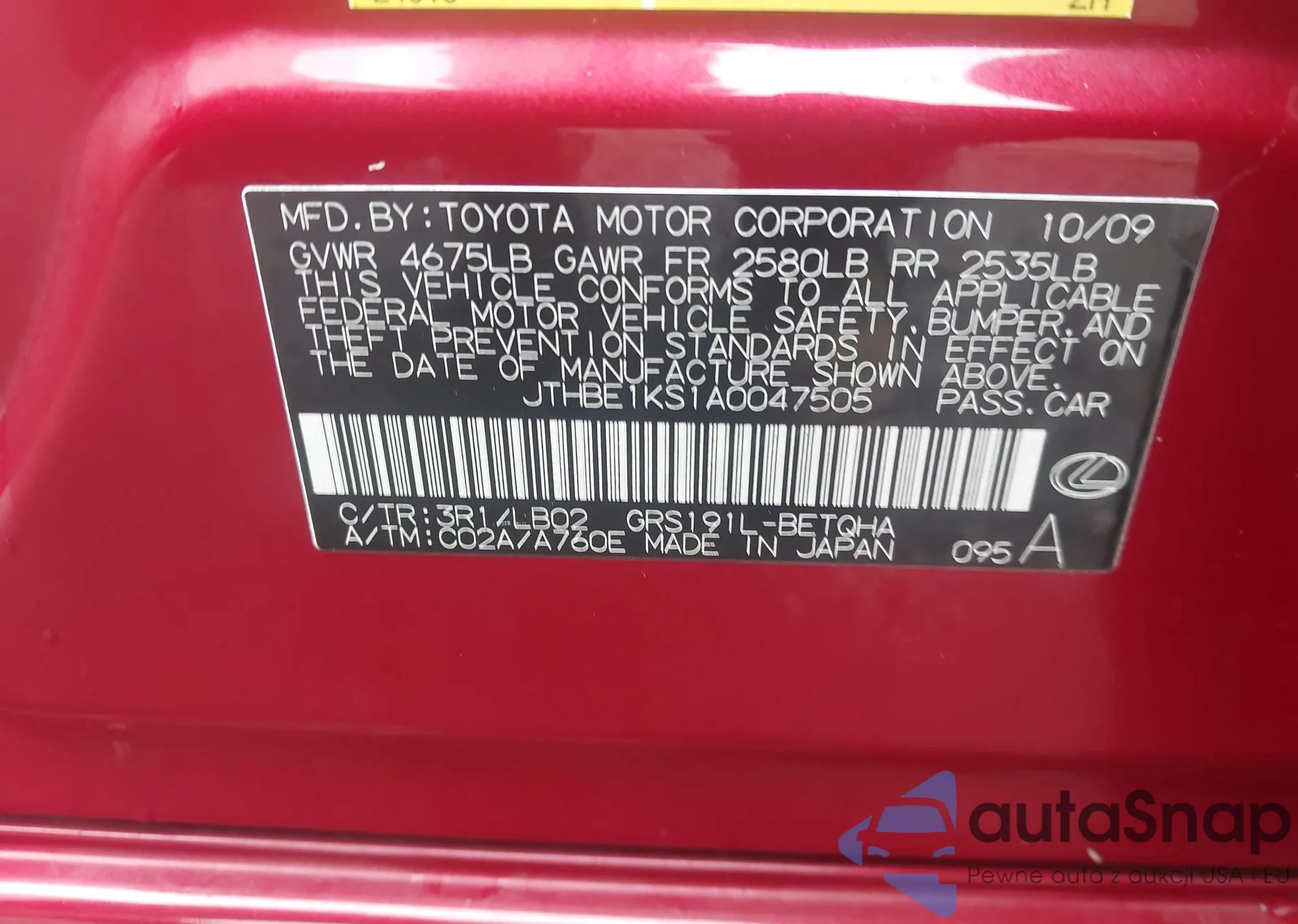 VIN: JTHBE1KS1A0047505