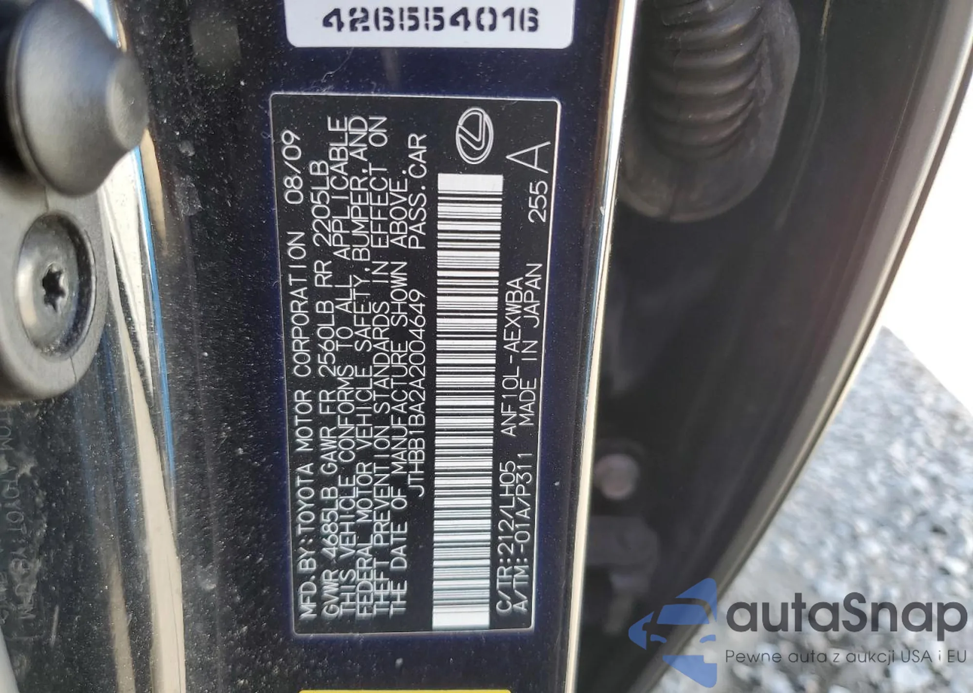 VIN: JTHBB1BA2A2004649